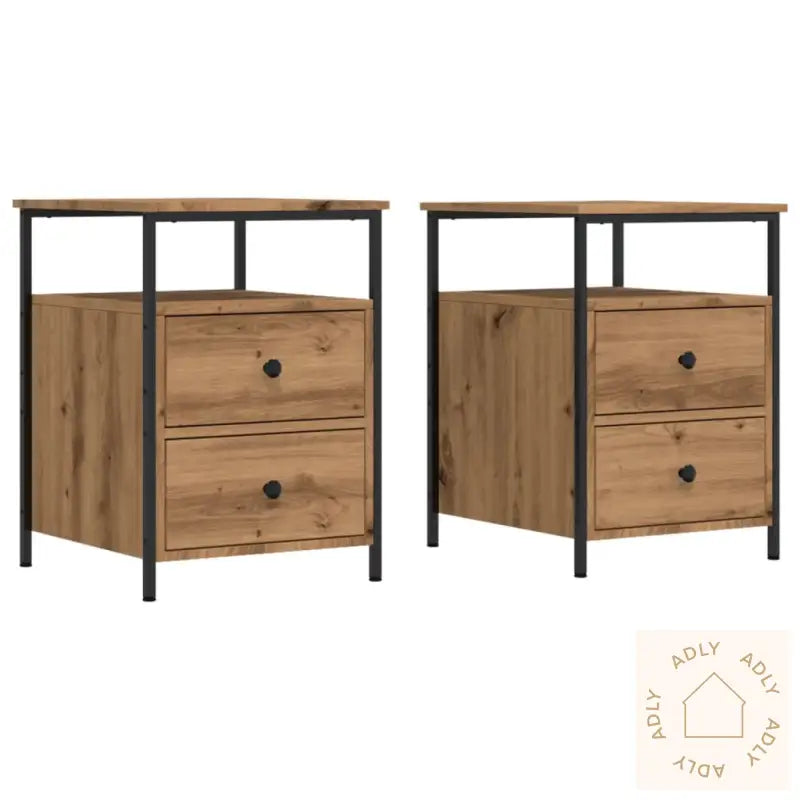Takket være det elegante og tidløse designet vil disse trendy nattbordene i artisan eik umiddelbart løfte inntrykket av interiøret ditt og gi rommet et moderne, klassisk preg.