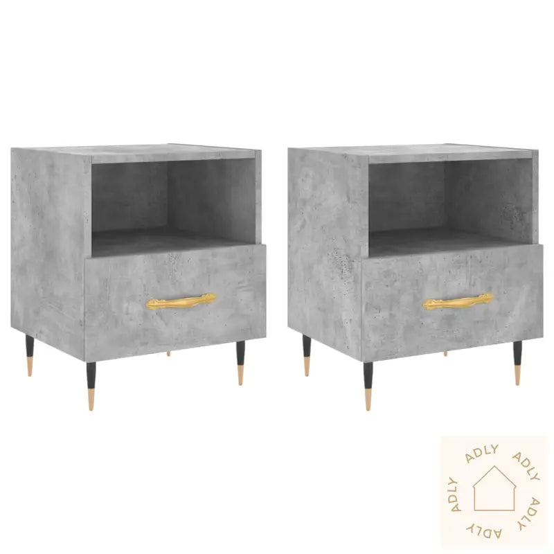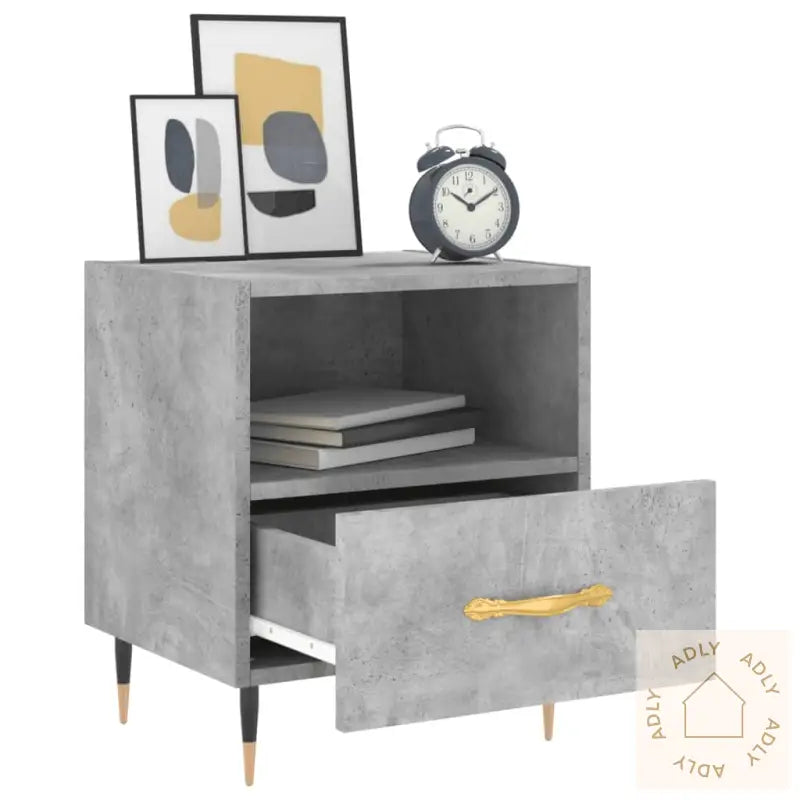 Slitesterkt materiale: Nattbordet er laget av kvalitetskonstruert treverk som har en glatt og lettstelt overflate. Dette gir både styrke, stabilitet og god motstand mot fukt, slik at nattbordet holder seg pent lenge i hverdagsbruk.Romslig lagringsplass: Du får rikelig med plass til å organisere bøkene dine, multimediautstyr eller nødvendigheter på nattbordet. Den åpne hyllen gjør det enkelt å få tak i det du bruker ofte, mens skuffen gir diskret oppbevaring – perfekt for deg som ønsker romslig lagringsplass uten rot.Visningsmuligheter: Topplaten egner seg flott til dekor, som bilder, blomster eller pyntegjenstander. Gjør nattbordet til et personlig blikkfang og la favoritteffekter være lett tilgjengelig rett ved sengen.Metallføtter: Kvalitetsføttene i metall gir en moderne touch og stabil støtte til møbelet, samtidig som de fremhever designet og gir nattbordet den lille ekstra detaljen som matcher alt fra klassiske bokhyller og stående hyller til mer moderne hagemøbler.Farge: betonggråMaterialer: konstruert tre, jernMål: 40 x 35 x 47,5 cm (B x D x H)Montering kreves: jaLeveransen inneholder:2 x nattbord