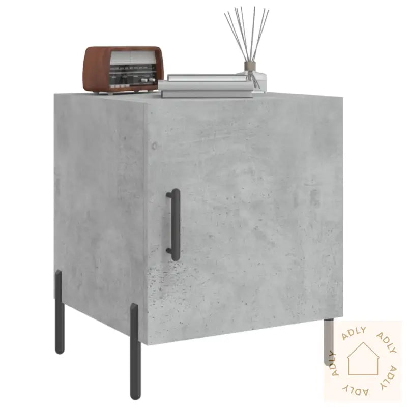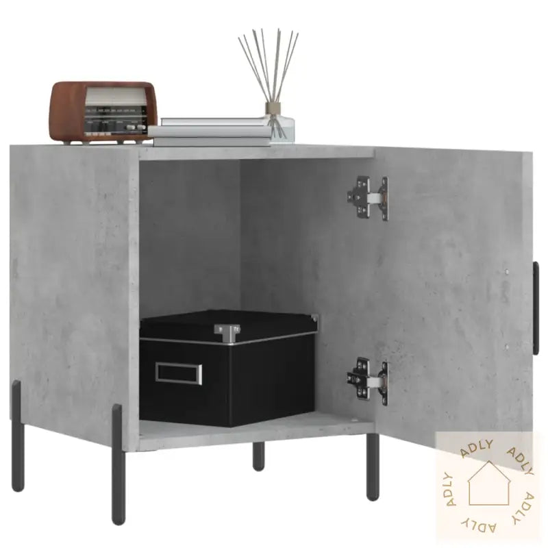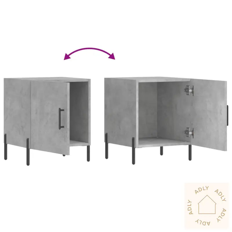 For å forhindre at møbelet velter må produktet festes til veggen med den medfølgende festeanordningen. Farge: betonggråMaterialer: konstruert tre, jernMål: 40 x 40 x 50 cm (B x D x H)Montering kreves: jaLeveransen inneholder:2 x nattbordLegal Documents: