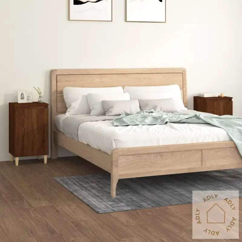Takket være sitt elegante og klassiske design i brun eik, vil disse trendy nattbordene enkelt løfte interiøret og gi rommet en ny dimensjon. Perfekt som både funksjonelle og stilige møbler til hjemmet, passer de flott inn sammen med alt fra senger til bokhyller og stående hyller.