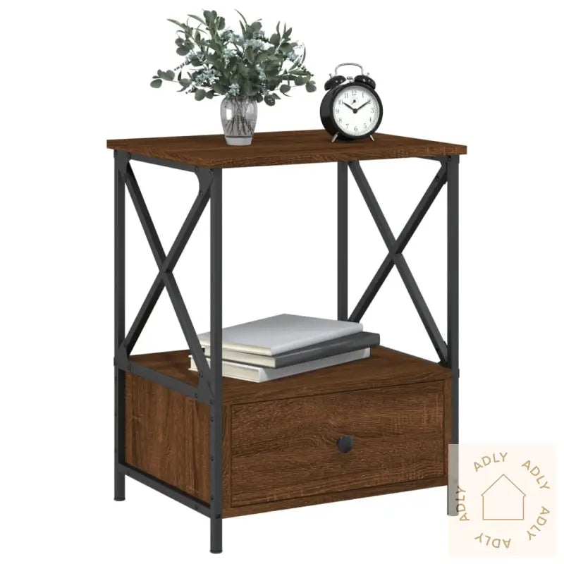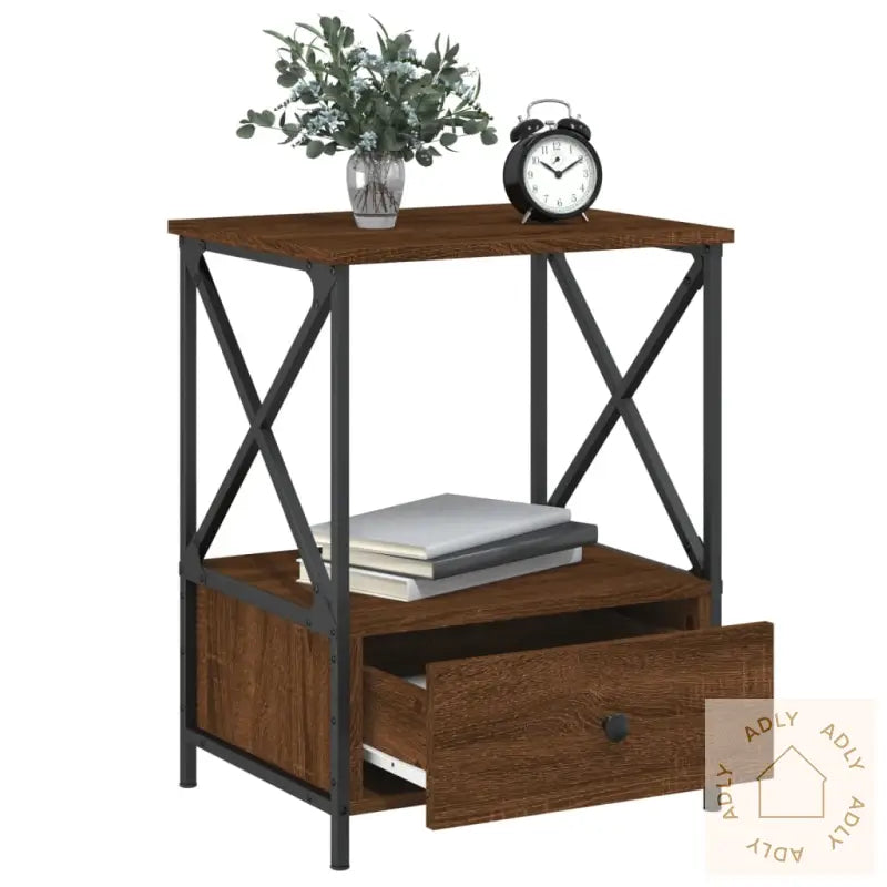 Disse nattbordene i industriell stil er et allsidig og tidløst tillegg til møbler til hjemmet, og passer perfekt for deg som ønsker en moderne vri. Den flotte brun eik-fargen gir et varmt og naturlig preg, samtidig som det solide materialvalget sikrer varighet over tid.