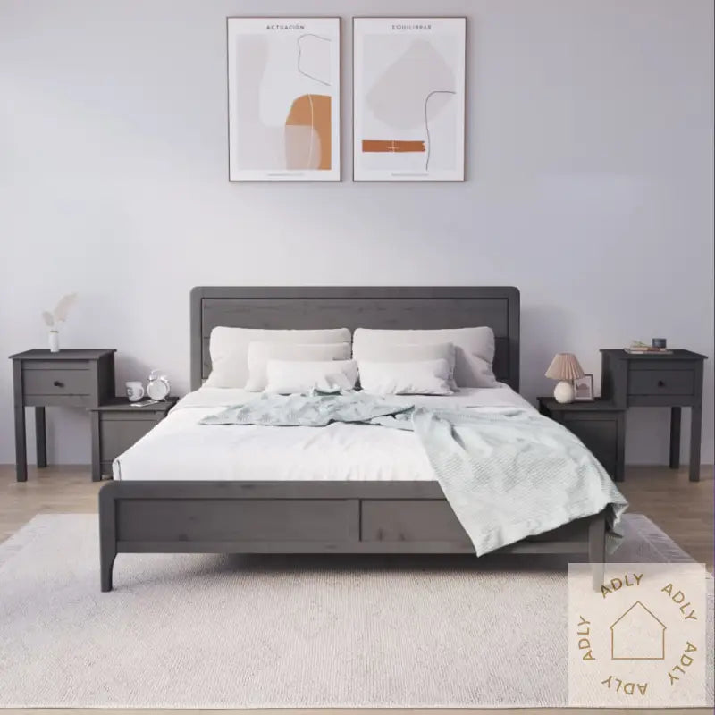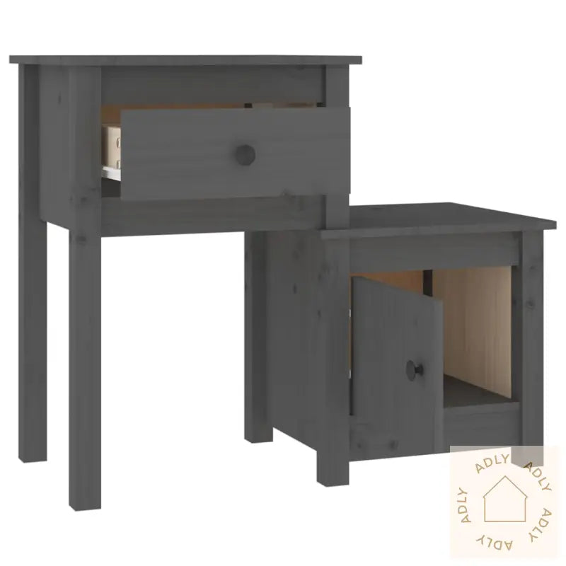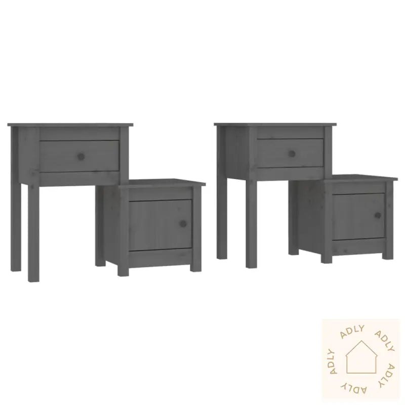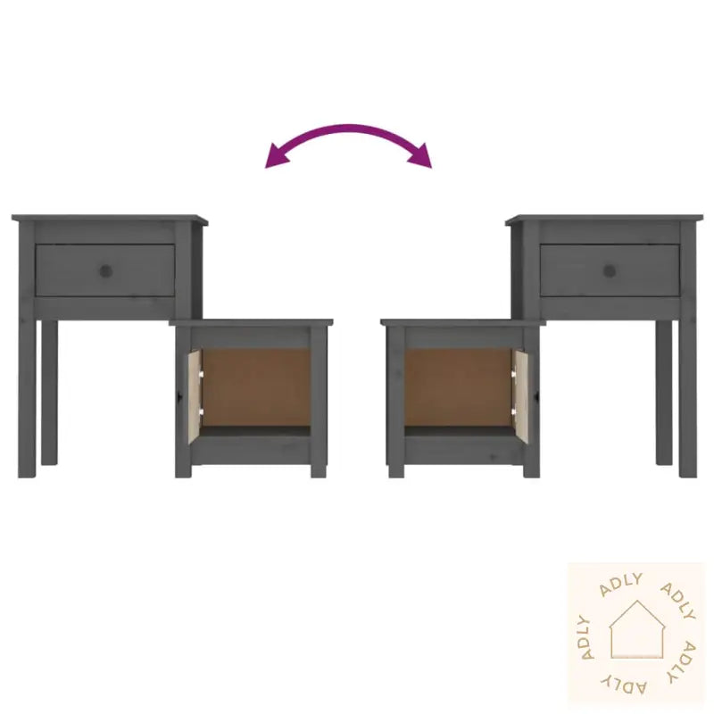 Hvert nattbord pakkes med en tydelig monteringsveiledning, slik at du enkelt kan sette sammen dine nye møbler til hjemmet uten stress.Farge: gråMateriale: heltre furuMål: 79,5 x 38 x 65,5 cm (B x D x H)Fleksibel installasjonLeveransen inneholder:2 x nattbordLegal Documents:
