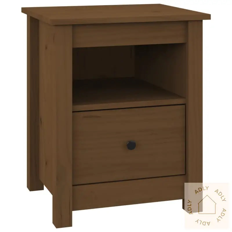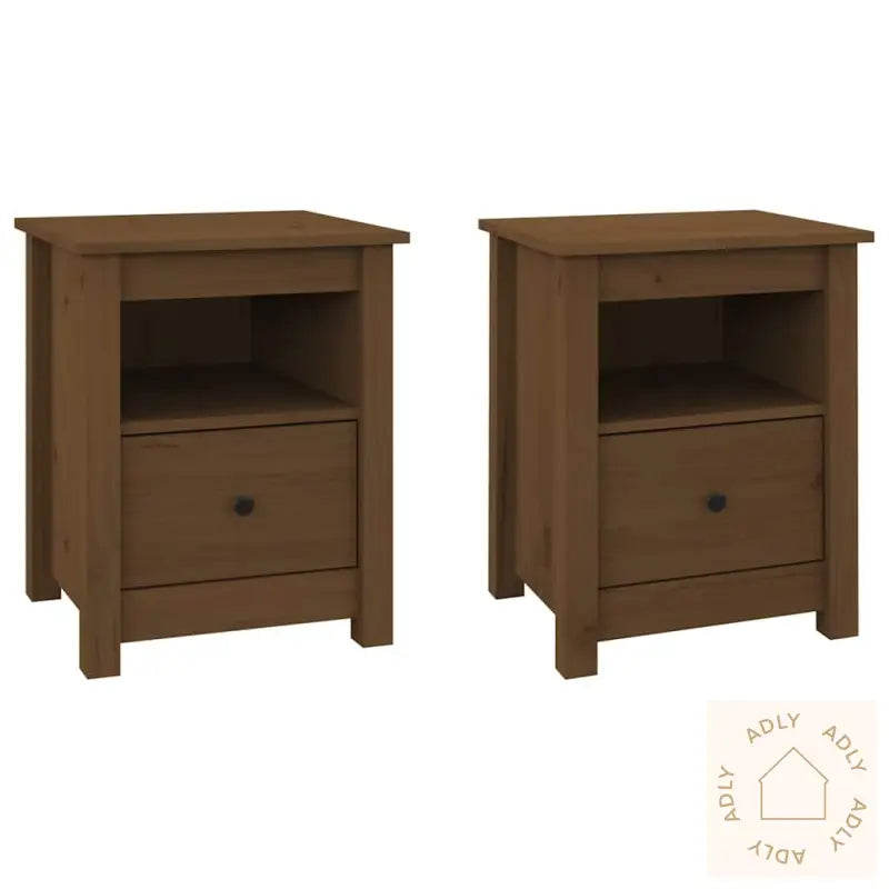 Farge: honningbrunMateriale: heltre furuMål: 40 x 35 x 49 cm (B x D x H)Leveransen inneholder:2 x nattbord