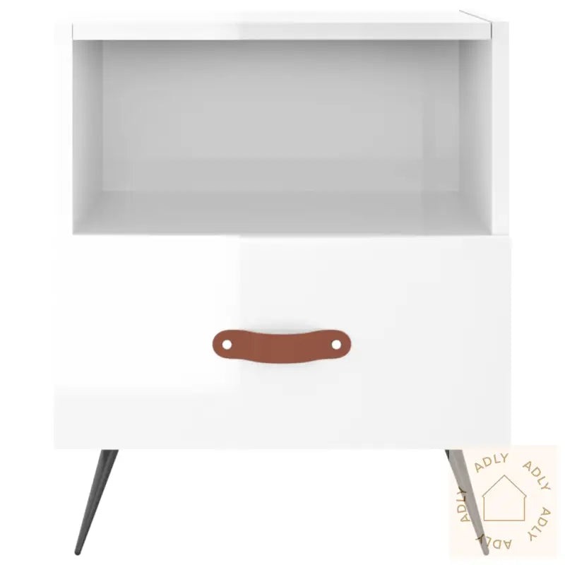 Slitesterkt materiale: Det konstruerte treverket i høy kvalitet har en glatt overflate som ikke bare gir et elegant utseende, men også sikrer styrke, stabilitet og god motstand mot fuktighet – perfekt for langvarig bruk.Romslig lagringsplass: Nattbordet har både et åpent rom og en skuff, slik at du enkelt kan organisere bøker, multimediautstyr eller andre nødvendigheter akkurat der du trenger dem. Med denne løsningen holder du alt du ønsker nært og oversiktlig – ideelt for deg som setter pris på orden og design.Visningsfunksjon: Den robuste toppen av sideskapet gir deg plass til å fremheve favorittbildene dine, dekorasjoner eller friske blomster, noe som skaper en mer personlig og innbydende stemning i rommet. Kombiner gjerne nattbordet med bokhyller og stående hyller for et helhetlig og funksjonelt interiør.Metallføtter: De solide metallføttene sørger for god stabilitet og tilfører et moderne preg til innredningen. Dette gir nattbordet et stilig uttrykk samtidig som det står stødig.Farge: Høyglans hvitMaterialer: Konstruert tre, jern, PU-kunstskinnMål: 40 x 35 x 47,5 cm (B x D x H)Montering kreves: JaLeveransen inneholder:2 x nattbord