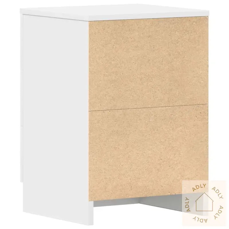 Farge: HvitMateriale: Konstruert treMål: 38 x 35 x 56 cm (B x D x H)Med 3 jevnt glidende skufferLeveringen inkluderer 2 nattbord