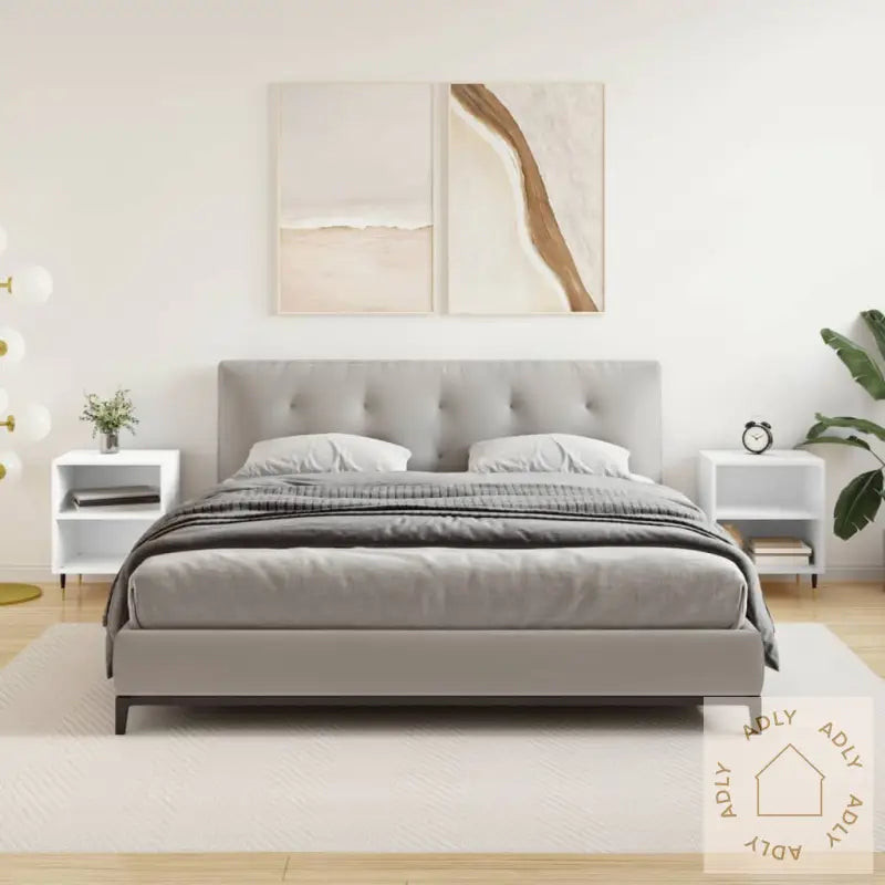 Slitesterkt materiale: De er laget av konstruert tre av høy kvalitet, kjent for sin glatte overflate, solide konstruksjon og evne til å tåle daglig bruk. Materialet gir stabilitet og god motstand mot fuktighet, noe som gjør nattbordene enkle å vedlikeholde – de tørkes raskt og enkelt av med en fuktig klut.Rikelig med oppbevaringsplass: Med to rom gir hvert nattbord smart og oversiktlig oppbevaring, ideelt for å ha magasiner, bøker, elektronikk og andre småting organisert og alltid for hånden når du slapper av eller skal legge deg.Stabil topp: Den robuste toppen gir god plass til å vise fram bilder, grønne planter eller andre dekorative elementer som gir personlighet og stil til soverommet ditt. Dette gir deg muligheten til å skape en hyggelig atmosfære og samtidig maksimere funksjonaliteten av møblene dine.Advarsel: