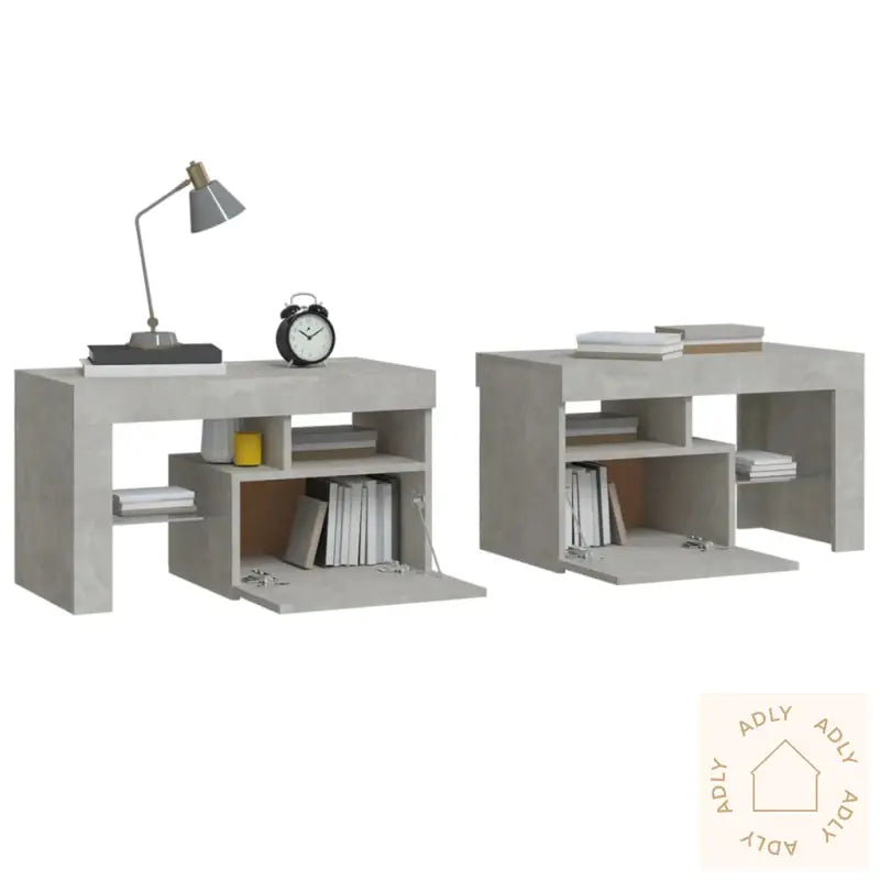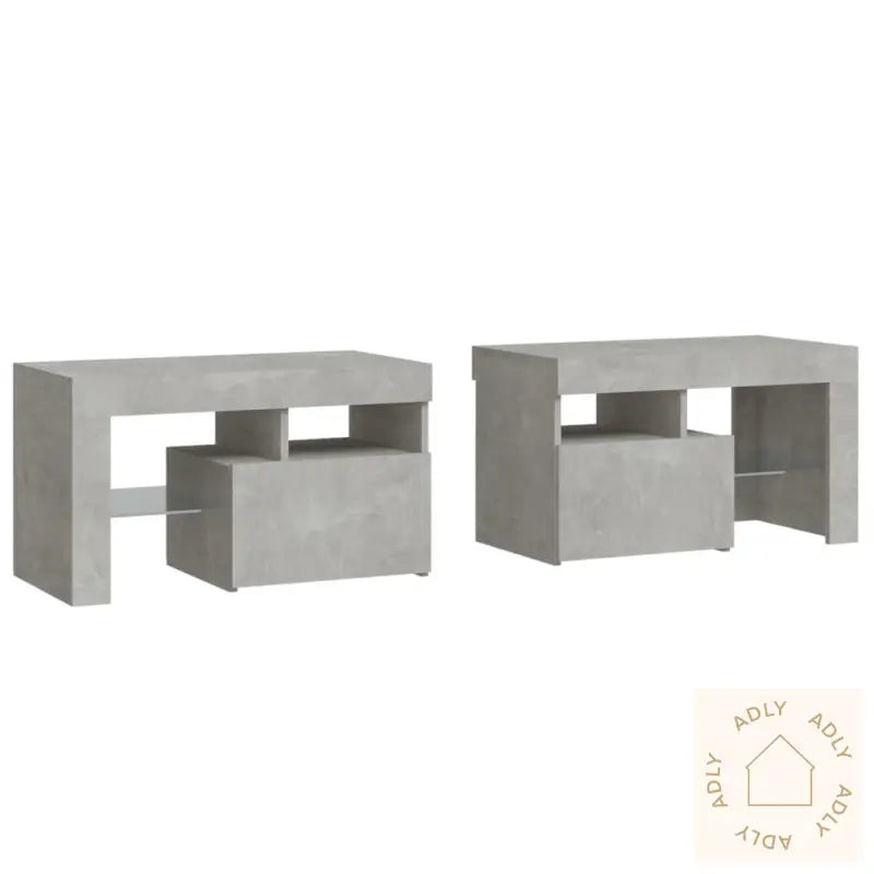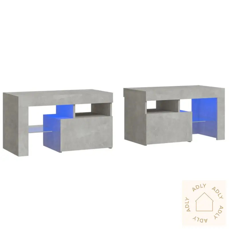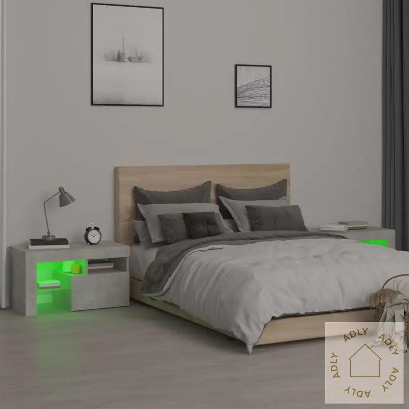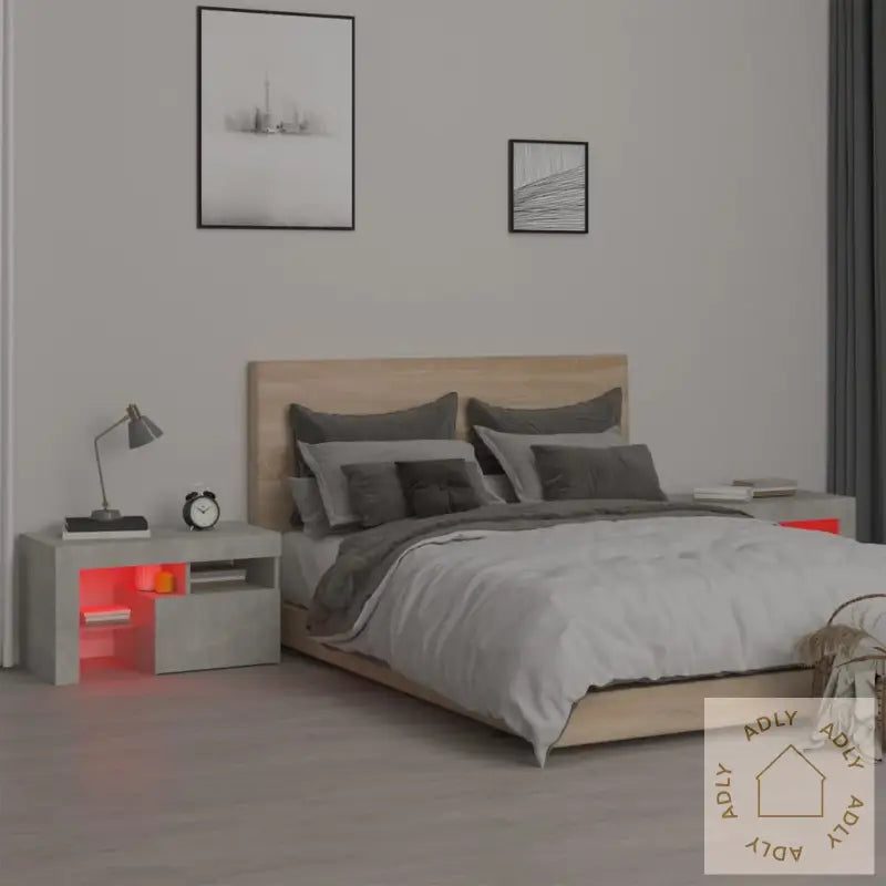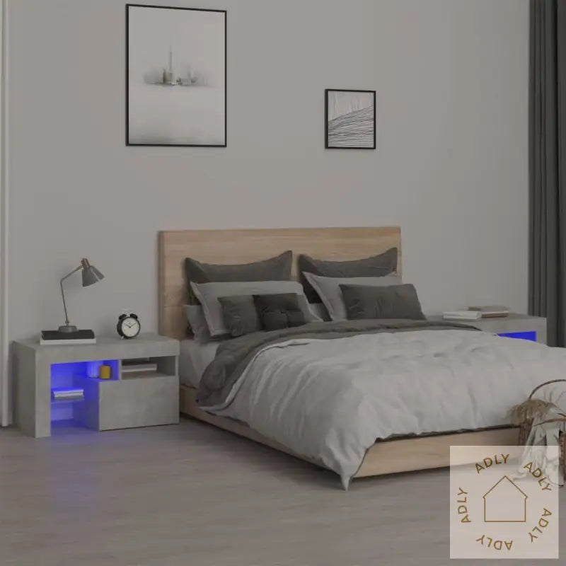USB-kontakten gir fleksibel bruk av LED-lyset, men det følger ikke med ekstern 5V USB-strømkilde.Alle deler sendes med enkel og forståelig monteringsveiledning, så nattbordene er raske og enkle å sette sammen.Farge: BetonggråMateriale: Konstruert treMål (hvert): 70 x 36,5 x 40 cm (L x B x H)Med RGB LED-lysPakken inneholder:2 x nattbordOppdag hvordan moderne møbler som dette nattbordet med RGB LED-lys umiddelbart kan oppgradere stilen og funksjonaliteten på soverommet ditt. Kombiner gjerne med andre møbler til hjemmet for et helhetlig, moderne uttrykk!