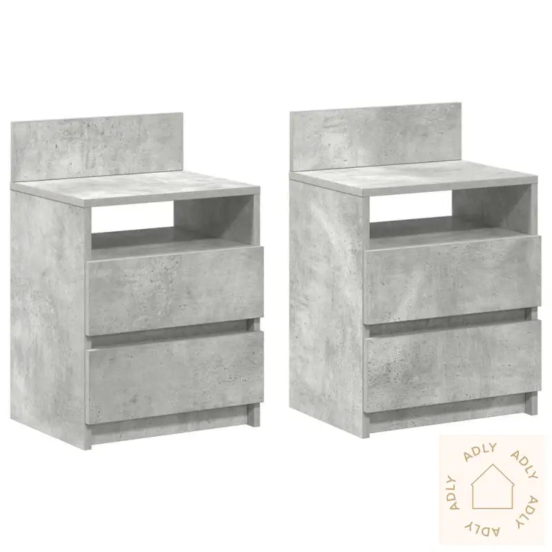 Stabilt og slitesterkt materiale: Nattbordene er laget av konstruert tre, et robust og holdbart materiale som tåler daglig bruk og holder seg pent lenge. Overflaten er jevn og enkel å holde ren, og materialet står imot både fuktighet og sprekker – ideelt for rom der stabilitet og varighet er viktig, akkurat slik man ønsker i kvalitetsmøbler.Rikelig med oppbevaring: Med to dype skuffer og en åpen hylle får du god plass til å organisere både bøker, blader, elektronikk og personlige eiendeler. Du sparer tid på rydding og får et ryddigere soverom – perfekt hvis du ønsker at interiøret skal fremstå rolig og oversiktlig. Det smarte oppsettet gjør også at du utnytter plassen rundt sengen maksimalt, omtrent slik bokhyller og stående hyller gjør ellers i hjemmet.Praktisk bruk: Bordet har en høyde som gjør at du enkelt når det fra sengen, slik at alt du trenger alltid er innen rekkevidde. Dette gir en ekstra behagelig hverdagsopplevelse og bidrar til et gjennomført rom.Enkelt vedlikehold: Den glatte overflaten gjør rengjøringen rask og enkel – alt du trenger er en fuktig klut. Du bruker mindre tid på vedlikehold, og får mer tid til å nyte rommet eller slappe av, akkurat slik man ønsker fra moderne møbler til hjemmet.Advarsel: