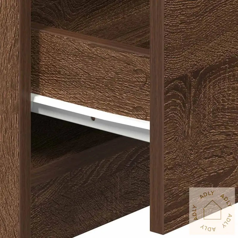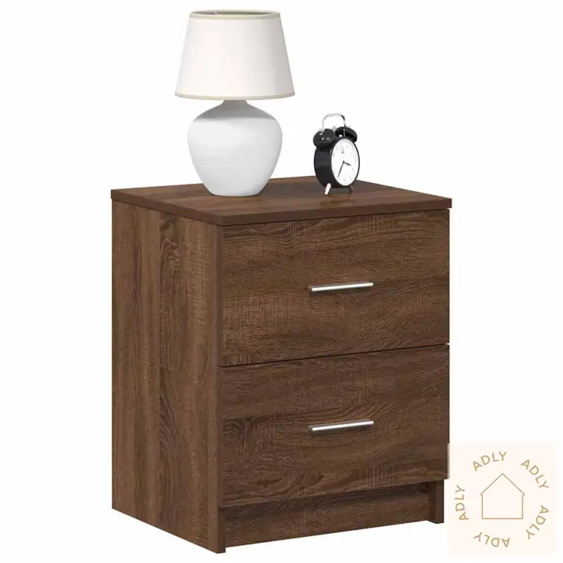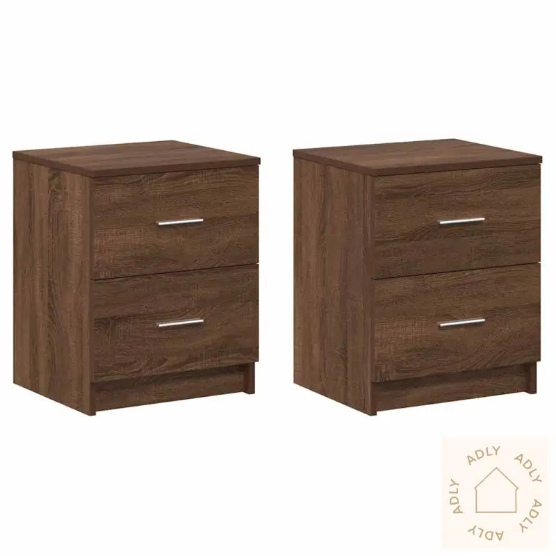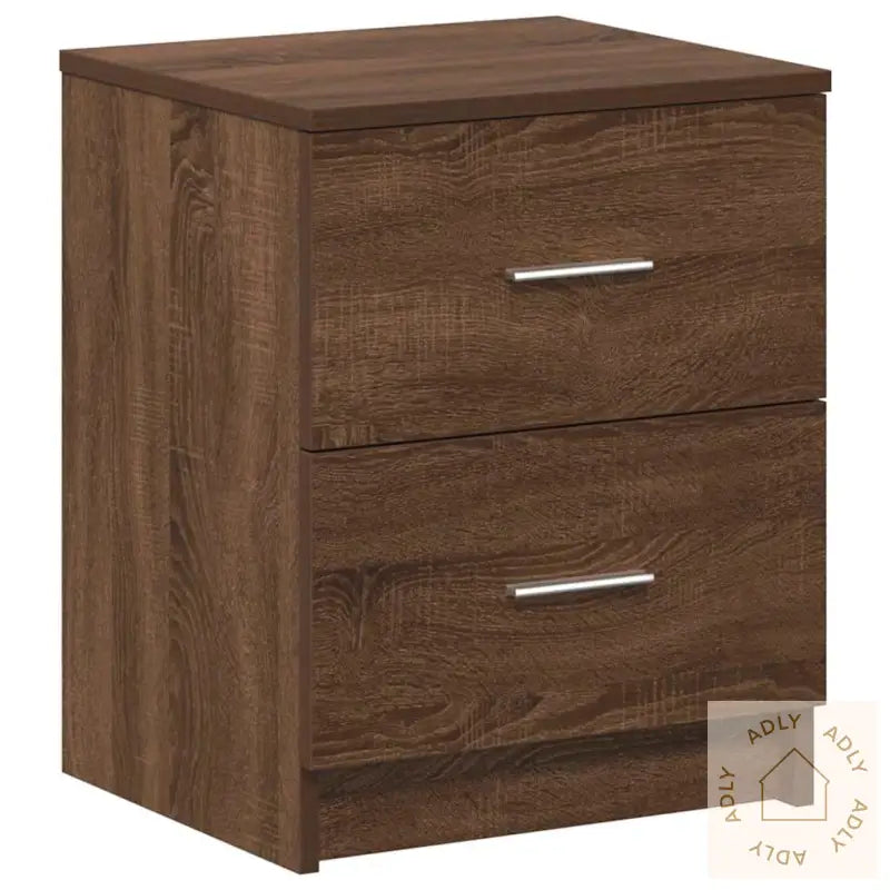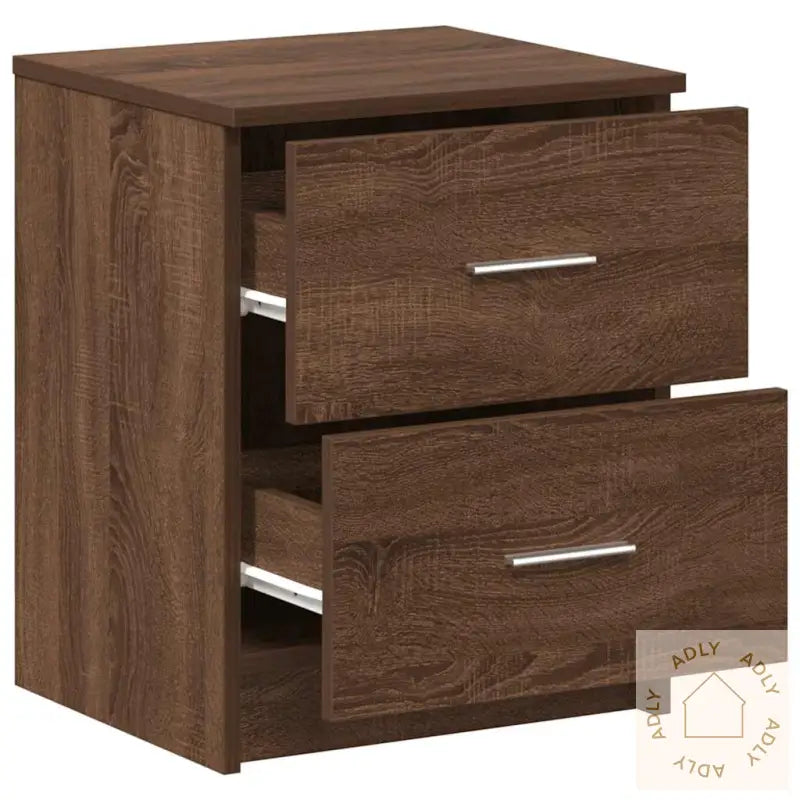 Stabilt og slitesterkt materiale: Disse nattbordene er laget av konstruert tre, kjent for sin holdbarhet, stabilitet og glatte overflate. Materialet tåler fuktighet og motvirker både vridning og sprekker, så du får varige møbler med minimalt vedlikehold, perfekt i kombinasjon med andre møbler til hjemmet som bokhyller og stående hyller.Rikelig med oppbevaring: Med to romslige skuffer får du god plass til å organisere alt fra bøker og magasiner til personlige eiendeler. Perfekt for deg som ønsker et soverom preget av orden og oversikt, samtidig som brun eik gir et varmt, naturlig preg i rommet.Praktisk bruk: Nattbordets høyde gjør det enkelt å nå alt fra sengen, mens de brukervennlige håndtakene på skuffene sikrer at du åpner dem smidig og uten problemer. Den nøye tilpassede designen gjør hverdagen din mer bekvem.Enkel å vedlikeholde: Den glatte overflaten gjør nattbordet lett å rengjøre med en fuktig klut – så du holder nattbordet pent og innbydende, året rundt.Advarsel:
