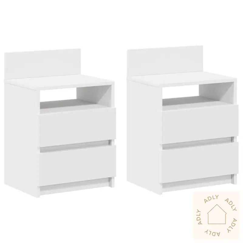 For å unngå at produktet velter må du bruke den medfølgende festeanordningen.Farge: HvitMateriale: Konstruert treMål (hver): 40 x 33 x 60 cm (B x D x H)Mål skuff (hver): 40 x 33 x 14 cm (B x D x H)Antall skuffer: 2Total vektkapasitet: 60 kgVektkapasitet per skuff: 5 kgMontering kreves: JaPakken inneholder:2 x nattbord