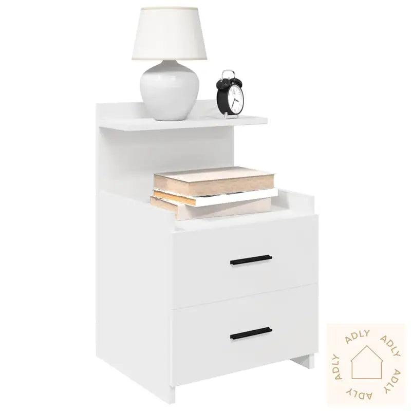 Stabilt og slitesterkt materiale: Nattbordene er laget i konstruert tre – et materiale kjent for solid stabilitet og lang levetid. Overflaten er glatt, enkel å holde ren og motstandsdyktig mot fukt og vridning, så du får et pålitelig valg som tåler daglig bruk. Rikelig med oppbevaringsplass: Med to romslige skuffer og en åpen hylle har du plass til alt fra bøker, magasiner, briller eller andre personlige eiendeler du vil ha lett tilgjengelig. Praktisk oppbevaring gir deg et ryddigere og mer organisert soverom.Praktisk bruk: Det kompakte designet og den ideelle høyden gjør det enkelt å nå ut etter det du trenger – rett fra senga. Skuffene har brukervennlige håndtak som gjør det lekende lett å åpne og lukke dem uten problemer.Enkel å vedlikeholde: Den glatte overflaten gjør at du enkelt kan tørke av støv eller søl med en fuktig klut – mer praktisk kan det ikke bli! Dette nattbordet er derfor perfekt for deg som vil bruke tiden på viktigere ting enn rengjøring.Advarsel: