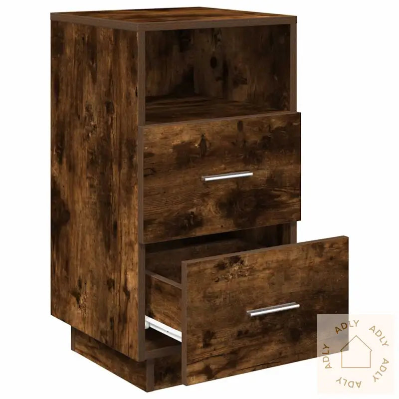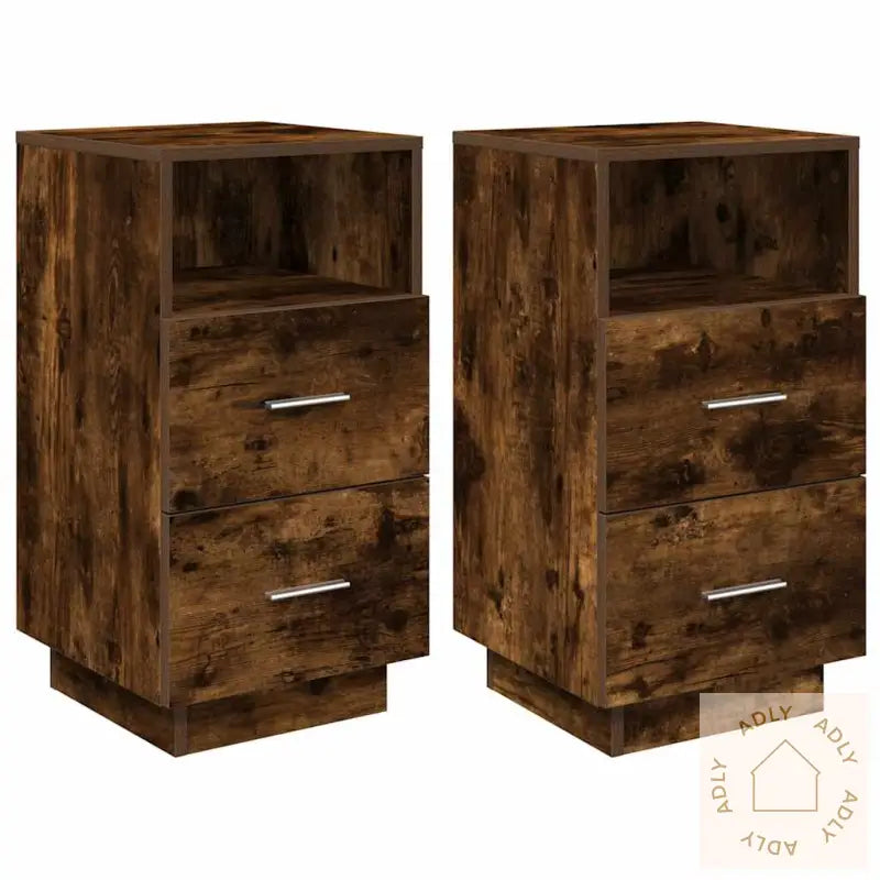 Stabilt og slitesterkt materiale: Skapene er produsert i konstruert tre, noe som gir en jevn og robust overflate. Dette materialet er kjent for å tåle daglig bruk, er motstandsdyktig mot fuktighet og holder seg fint over tid uten å vri seg eller sprekke – en stor fordel blant moderne møbler.Rikelig med oppbevaring: Her får du to romslige skuffer samt et åpent oppbevaringsrom. Med denne løsningen blir det enkelt å holde orden på alt fra bøker og magasiner til personlige småting. Skapene bidrar til at soverommet fremstår ryddig og oversiktlig.Praktisk bruk: Den ideelle høyden gjør at alt er lett tilgjengelig fra sengen, mens skuffene er utstyrt med solide håndtak som sørger for at de glir lett og komfortabelt ut og inn – viktig for dem som ønsker praktiske møbler til hjemmet.Enkelt å vedlikeholde: Overflaten er glatt og gjør det raskt å tørke støv eller fjerne flekker med en fuktig klut, så du slipper mye vedlikehold.Advarsel: