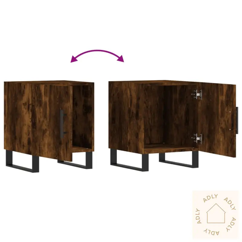 Farge: røkt eikMaterialer: konstruert tre, jernMål: 40 x 40 x 50 cm (B x D x H)Montering kreves: jaLeveransen inneholder:2 x nattbordLegal Documents: