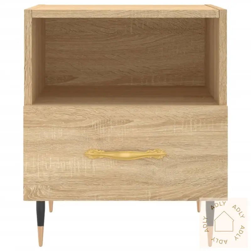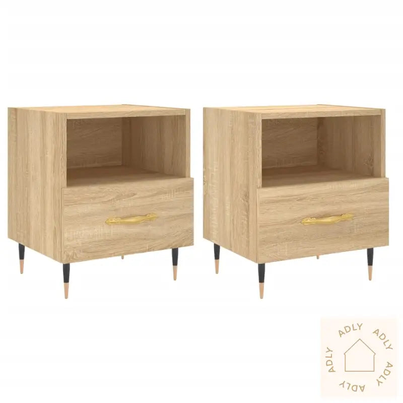 Slitesterkt materiale: Det konstruerte treverket av høy kvalitet sørger for lang levetid og har en glatt, motstandsdyktig overflate. Materialet er kjent for sin styrke, stabilitet og evne til å tåle fuktighet – perfekt for rom hvor varige møbler er viktig.Romslig lagringsplass: Hver nattbord har både et åpent rom og en skuff som hjelper deg å holde orden. Nå kan du enkelt ha bøker, multimediaapparater eller andre småting innen rekkevidde uten at det roter til nattbordet. Den smarte løsningen gjør det lett å organisere og skape en ryddig atmosfære.Visningsfunksjon: Toppen av nattbordet gir deg en flott plass til å vise frem bilder, dine favorittdekorasjoner eller friske blomster for å gjøre rommet mer personlig.Metallføtter: De solide metallføttene gir ikke bare ekstra stabilitet, men tilfører også en moderne touch og gjør nattbordene til et stilig blikkfang i rommet.Farge: sonoma eik – en tidløs og naturlig finish som passer perfekt sammen med andre møbler til hjemmet, eller til å skape harmoniske kontraster.Materialer: konstruert tre, jernMål: 40 x 35 x 47,5 cm (B x D x H)Montering kreves: jaLeveransen inneholder:2 x nattbord