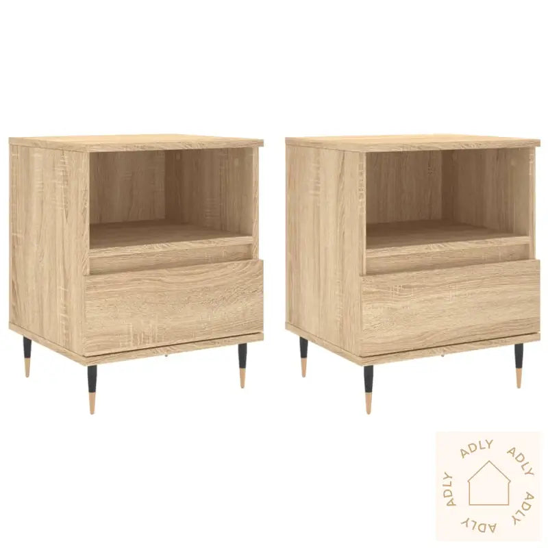 Slitesterkt materiale: Det konstruerte treverket sørger for kvalitetsfølelse med en jevn og behagelig overflate. Dette materialet gir nattbordet god styrke, stabilitet og høy motstand mot fukt — noe som gjør det ideelt for norske hjem. Overflaten er også veldig lett å holde ren; bare tørk over med en fuktig klut for å friske opp.Rikelig med lagringsplass: Skuffen kombinert med et åpent rom gir praktisk og ryddig oppbevaring for alt du trenger ved sengen, som bøker, fjernkontroller eller andre småting. Perfekt for deg som liker å ha favorittmagasinet eller bokhyller og stående hyller innen rekkevidde på soverommet.Solid topp: Den solide bordplaten gir en stødig plass til pynt, bilder eller kanskje en grønn potteplante som gir liv ved siden av sengen. Her har du god plass til å vise frem det som gir personlig preg til rommet.Metallben: De stilrene metallbena gir nattbordet et moderne uttrykk og tilfører samtidig ekstra stabilitet. Dette gir sonoma eik-finishen et spennende løft, slik at nattbordet passer til mange ulike stiler innenfor møbler til hjemmet.Advarsel: