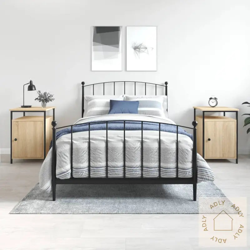 Slitesterkt materiale: Nattbordene er laget av konstruert tre i høy kvalitet, som har en glatt overflate og er kjent for sin styrke, stabilitet og gode motstand mot fuktighet. Dette gir deg møbler som holder seg pent over tid, selv ved daglig bruk.Stabil ramme: Den solide jernrammen sørger for ekstra holdbarhet og gjør at nattbordene står stødig, noe som gir trygghet når du oppbevarer ting eller setter dekor på toppen.Rikelig med lagringsplass: Med god plass til oppbevaring får du orden på alt fra bøker og blader til småting og elektronikk. Det gir deg mer oversiktlige omgivelser og gjør at du alltid har det viktigste innen rekkevidde.Visningsfunksjon: Bordplatene er perfekte for å vise favorittbildene dine, sette fram blomster eller skape en hyggelig atmosfære med små dekorasjoner. På den måten får du satt ditt personlige preg på hjemmet.Justerbare føtter: Fire justerbare føtter med plastputer gjør det lett å holde nattbordet i balanse, selv på ujevne gulv. Dette gir både stabilitet og beskyttelse mot riper på underlaget – spesielt nyttig hvis du ofte ommøblerer eller bruker nattbordet på forskjellige steder.Advarsel: