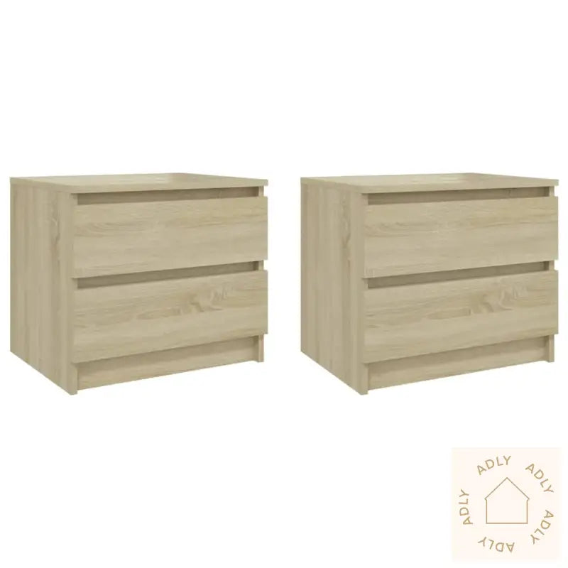 Oppgrader interiøret ditt til neste nivå med disse veldesignede og elegante nattbordene i sonoma eik. De passer perfekt inn blant moderne møbler til hjemmet, og gir soverommet ditt et friskt og tidløst uttrykk. Den solide konstruksjonen av konstruert tre gjør sideskapene svært holdbare, så du får glede av dem lenge.