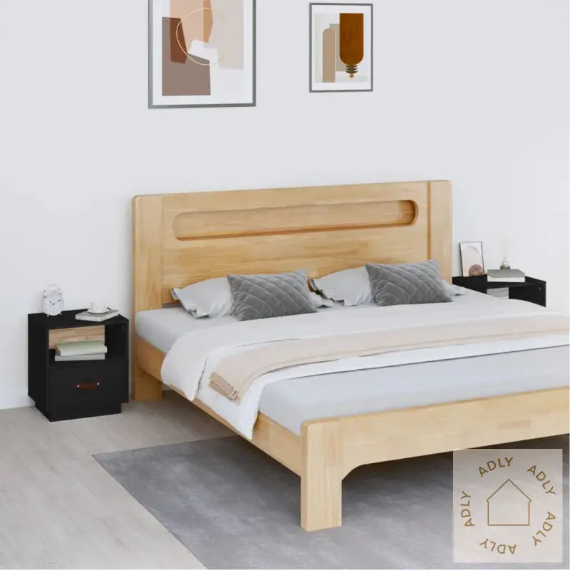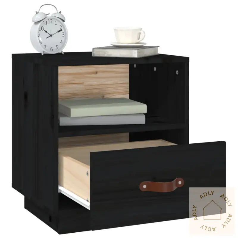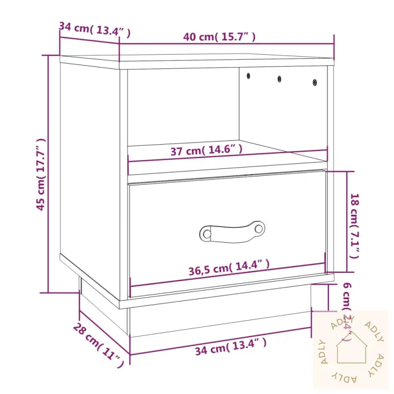 Heltre furu er kjent for sitt vakre preg med rette årringer, og de naturlige knutene gir hvert nattbord et unikt og rustikt utseende. Dette gjør at møbelet fremstår både solid og dekorativt, samtidig som det gir rommet karakter.Smart lagringsplass gjør det veldig enkelt å holde soverommet ryddig—hver enhet har én åpen hylle til bøker, magasiner eller andre småting du vil ha lett tilgjengelig, samt en praktisk skuff med håndtak trukket i kunstskinn. Her kan du oppbevare alt fra multimediaenheter til dekorative gjenstander på en diskret måte.Den solide toppen er perfekt for å vise frem dekorative gjenstander som bilder, små potteplanter eller din favorittlampe, slik at du enkelt kan sette ditt personlige preg på rommet ditt.Husk: Det følger med enkel og tydelig monteringsveiledning i esken, så du kommer raskt i gang!