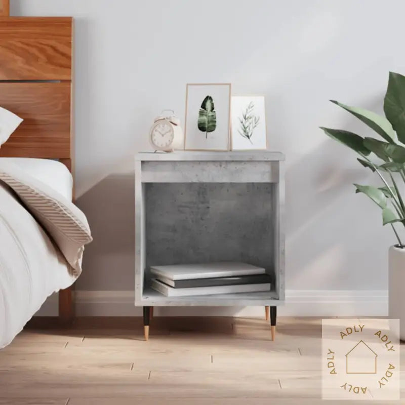 Metallben: Robuste metallben gir nattbordet god stabilitet, samtidig som de sørger for et moderne og stilrent uttrykk som passer sammen med andre møbler, også i ulike interiørstiler.Denne modellen kommer i en kul betonggrå farge, noe som gir et sofistikert og tidløst utseende som enkelt matcher både klassiske og mer moderne møbler. Nattbordet har målene 40 x 35 x 50 cm (L x B x H), og må monteres ved ankomst.