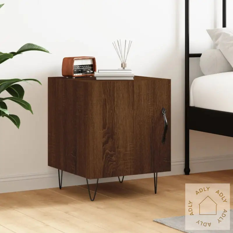 Slitesterkt materiale: Det konstruerte treverket har en elegant, glatt overflate og gir styrke, stabilitet og god motstand mot fuktighet, noe som gjør det til et varig valg for soverommet.Romslig lagringsplass: Nattbordet byr på et rom med god plass til oppbevaring, slik at du enkelt får plass til bøker, multimediautstyr eller andre nødvendige ting rett ved sengen. Med denne romslige lagringsplassen holder du orden på småtingene dine uten problemer!Visningsfunksjon: På toppen av nattbordet kan du fremheve favorittdekorasjoner, bilder eller friske blomster, og gjøre rommet enda mer personlig – flott for å sette ditt preg på interiøret.Metallføtter: De stilfulle metallføttene gir ikke bare et moderne uttrykk, men bidrar også til stabilitet og lang levetid, slik at nattbordet står stødig på alle underlag.Praktisk dør: Med den hendige døren kan du beskytte tingene dine mot støv og holde dem ute av syne, noe som gir et ryddig og harmonisk uttrykk i rommet.Advarsel: