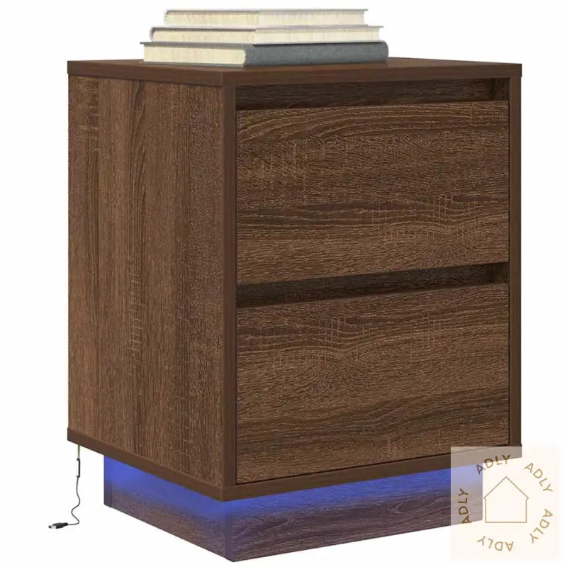 Oppgrader soverommet ditt med dette moderne nattbordsskapet med stilige LED-lys! Med sin elegante brun eik-finish passer det lett inn med ulike møbler til hjemmet og gir en oppdatert look til rommet ditt.