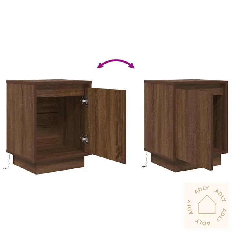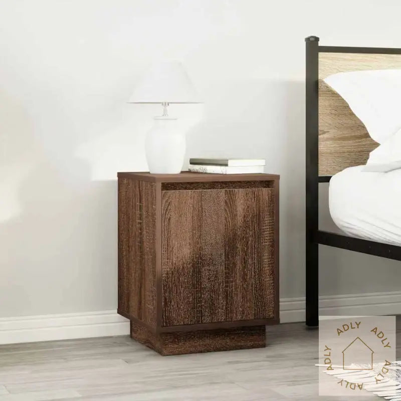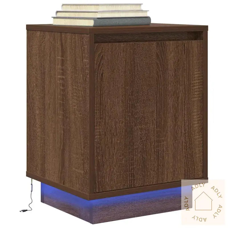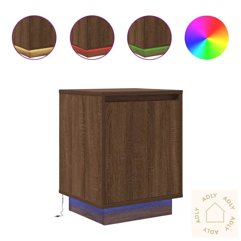 Oppgrader soverommet ditt med dette stilige nattbordsskapet i brun eik med stemningsfullt LED-lys! Dette nattbordet passer inn sammen med både klassiske og moderne møbler til hjemmet, og gir rommet ditt et løft uansett interiørstil.
