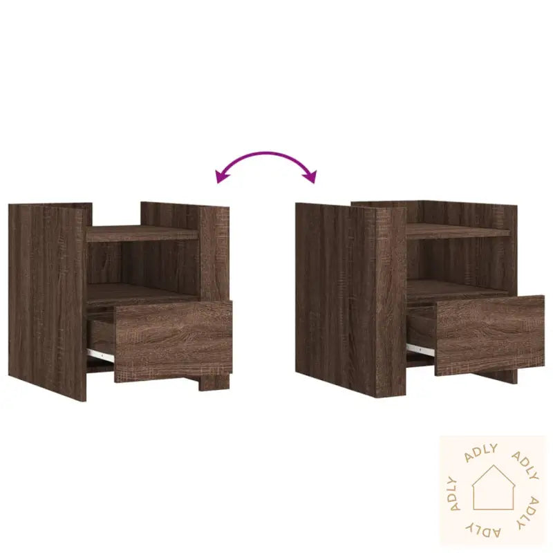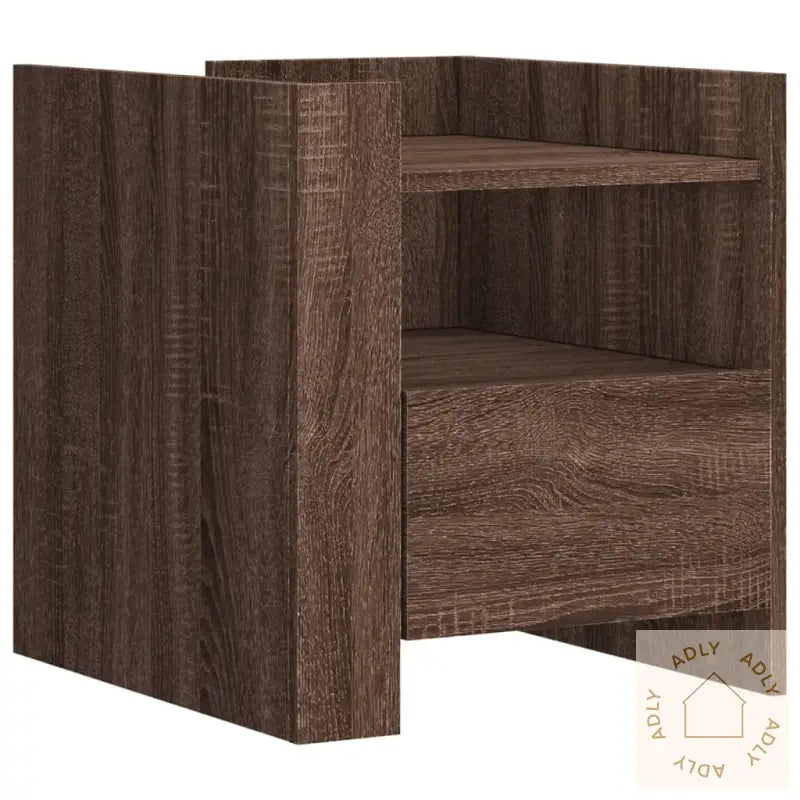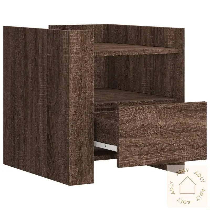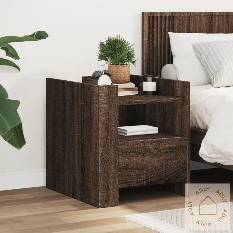 Med sitt stilige og gjennomtenkte design glir dette nattbordet enkelt inn blant møbler til hjemmet – enten det er på soverommet eller i stuen. Den varme brun eik-fargen gir interiøret en tidløs sjarm som varer lenge.