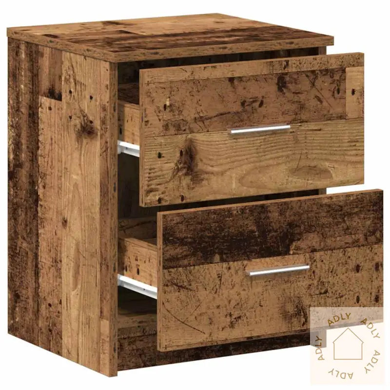 Farge: gammelt treMateriale: konstruert treSamlet mål: 40 x 36 x 50 cm (B x D x H)Mål skuff: 39,5 x 28,5 x 20,5 cm (B x D x H)Antall skuffer: 2Total vektkapasitet: 60 kgVektkapasitet per skuff: 5 kgMontering kreves: jaDette nattbordet gjør det enkelt å kombinere stil og funksjon i hjemmet, og passer like bra sammen med andre møbler som med hagemøbler eller utendørsmøbler for et helhetlig inntrykk. Med god lagringsplass og et tidløst design er dette et smart valg for deg som setter pris på både form og funksjon i møbler til hjemmet.