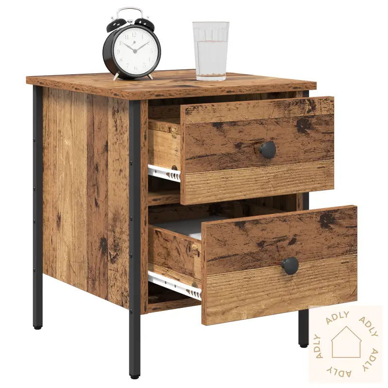 Dette nattbordet har en sjarmerende rustikk finish og to tradisjonelle skuffer som gir mye lagringsplass. De solide tre- og metallmaterialene sørger for at det varer lenge.