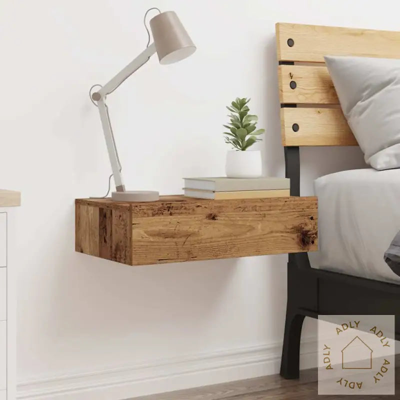 Skruer og plugger til veggmontering følger ikke med. Vi anbefaler at du velger beslag tilpasset veggene dine, og spør gjerne en profesjonell hvis du er usikker. Husk å følge alle monteringsinstruksjonene nøye.Nattbordet drives via USB-kontakt og trenger en sertifisert 5V USB-strømkilde (strømkilde følger ikke med).Farge: gammelt treMateriale: konstruert treMål topphylle: 60 x 35 x 15,5 cm (L x B x H)Mål base: 60 x 35 x 10 cm (L x B x H)Med RGB LED-lysMontering kreves: ja