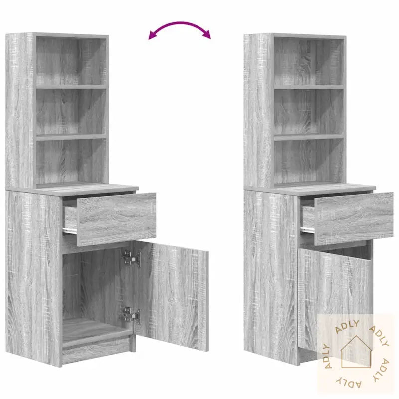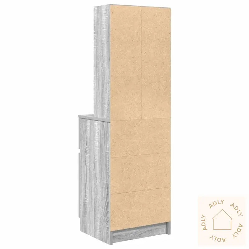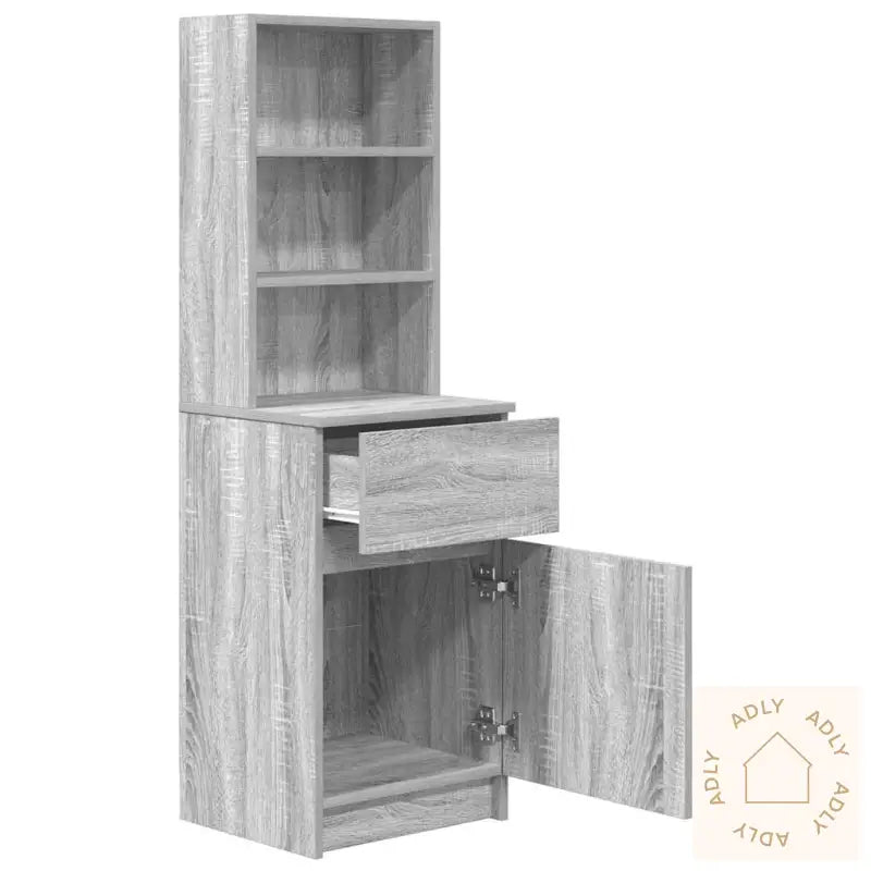 For å sikre at produktet ikke velter og står trygt, bør du bruke den medfølgende festeanordningen under montering.Farge: grå sonomaMateriale: konstruert treMål: 39 x 35 x 125 cm (B x D x H)Med 2 åpne hyller og 1 skuffTotal vektkapasitet: 60 kgVektkapasitet på skuff: 5 kgMontering kreves: ja