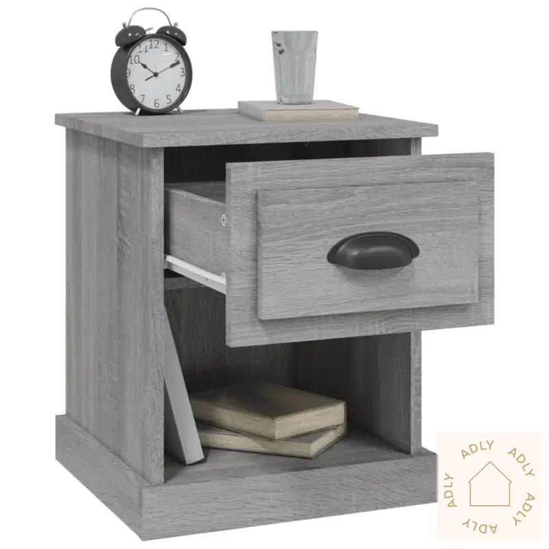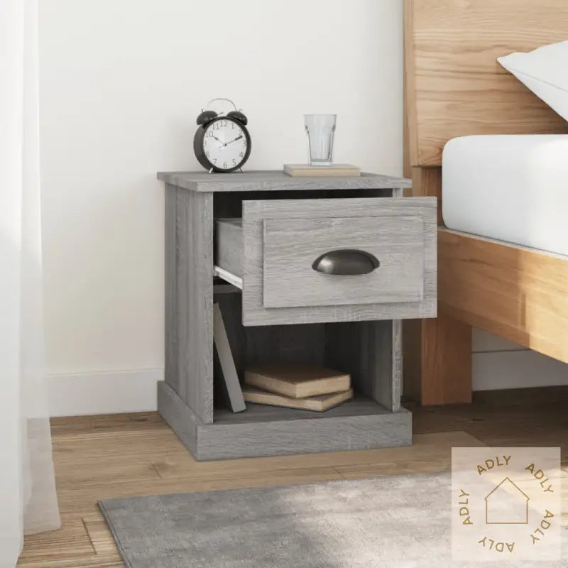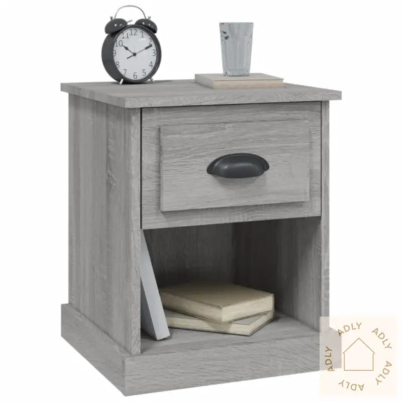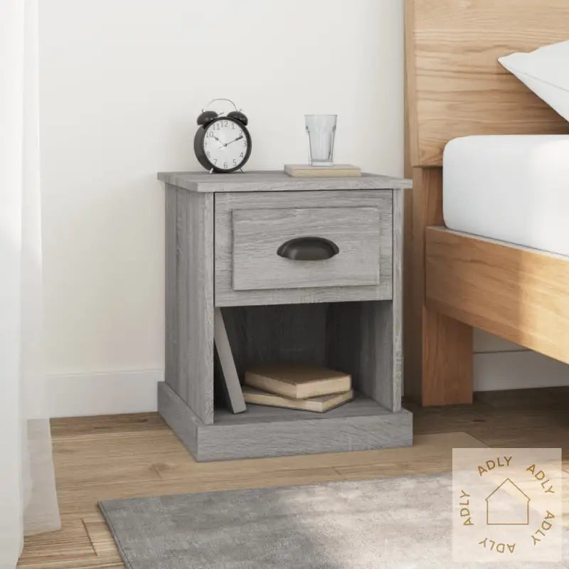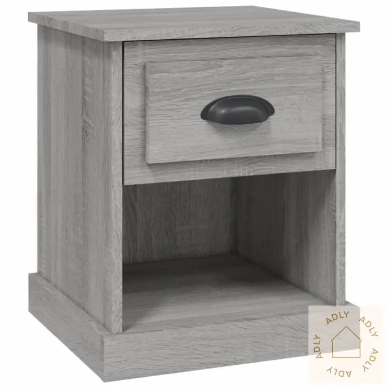 Slitesterkt materiale: Nattbordet er laget av konstruert tre med høy kvalitet. Det gir en glatt og moderne overflate, samtidig som det sikrer god styrke, stabilitet og lang levetid. Materialet tåler fuktighet godt, noe som gjør at dette møbelet holder seg fint over tid.Rikelig med oppbevaringsplass: Du får god plass med en solid bordplate, en praktisk skuff og et romslig åpent rom. Perfekt når du vil holde bøker, TV-tilbehør, briller eller kaffekoppen din i umiddelbar nærhet, enten du bruker det som nattbord eller kombinert med andre møbler til hjemmet.Multifunksjonelt design: Dette skapet passer til mye mer enn bare nattbord! Bruk det som et funksjonelt sidebord til sofaen, ekstra lagringsplass på kontoret, eller i kombinasjon med andre møbler for et helhetlig uttrykk. Det gir både fleksibilitet og stil i ethvert rom.Farge: grå sonomaMateriale: konstruert treMål: 39 x 39 x 47,5 cm (B x D x H)Montering kreves: ja