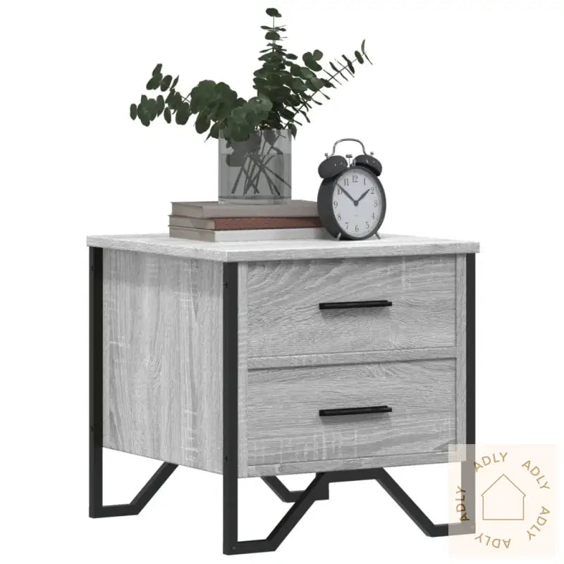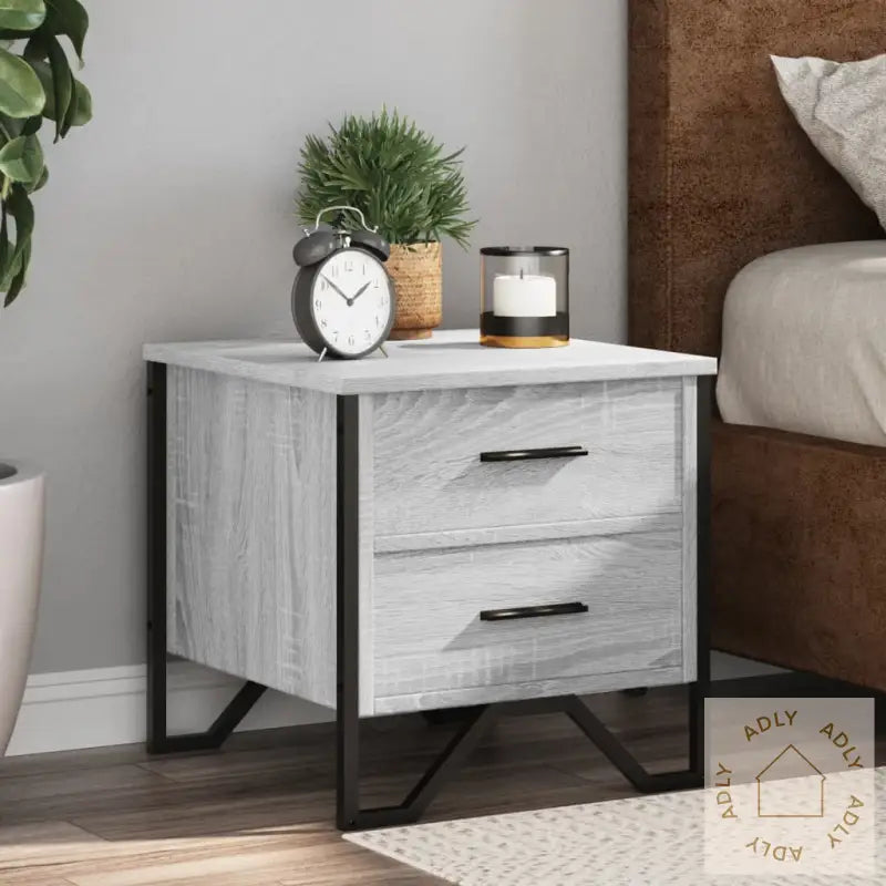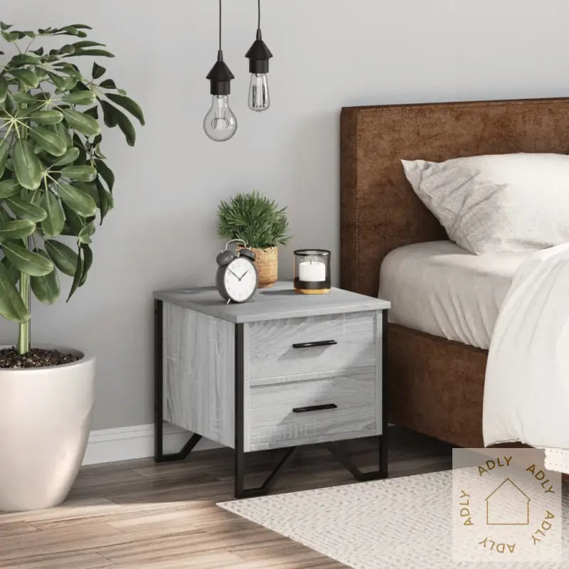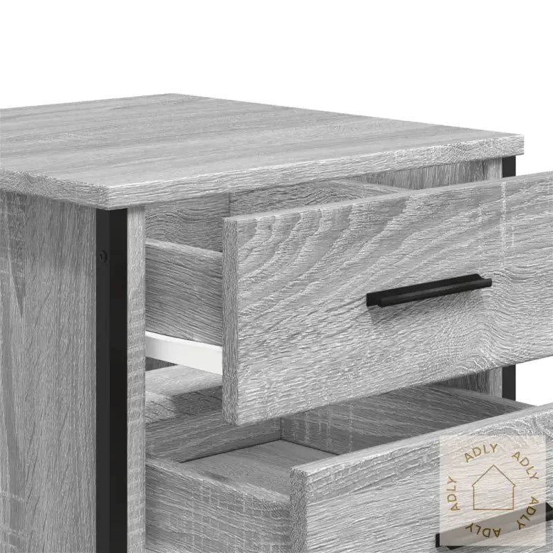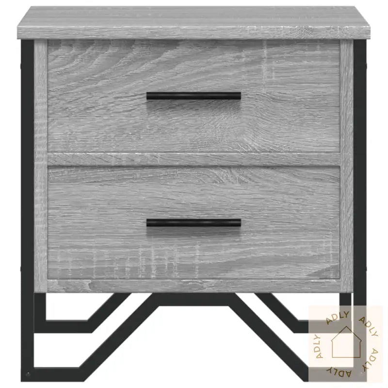 Holdbart materiale: Nattbordet er laget av førsteklasses konstruert treverk, som gir en glatt finish samtidig som det er sterkt, stabilt og motstandsdyktig mot fukt – perfekt når du ønsker slitesterke møbler i hverdagen.Rikelig med oppbevaringsplass: Med to romslige skuffer får du plenty plass til å holde småting som magasiner, bøker, fjernkontroller eller personlige eiendeler akkurat der du trenger dem – lett tilgjengelig, men uten rot.Solid topp: Den stabile overflaten på nattbordet egner seg godt for dekorasjoner som levende planter, rammede bilder, lysestaker eller favorittboken din – flott for den personlige touchen som gjør møblene dine unike.Metallben: Stilige ben i metall gir en moderne vri og sørger for at nattbordet står støtt og trygt, kombinert med et rolig og rent design som matcher mange typer bokhyller og stående hyller.Farge: grå sonomaMaterialer: konstruert tre, metallMål: 40 x 41 x 40 cm (L x B x H)Montering kreves: ja