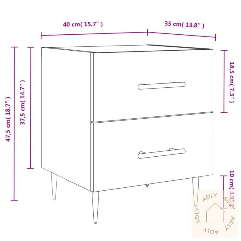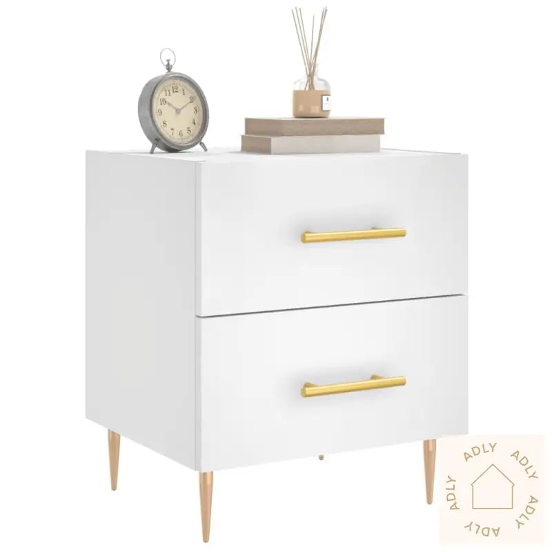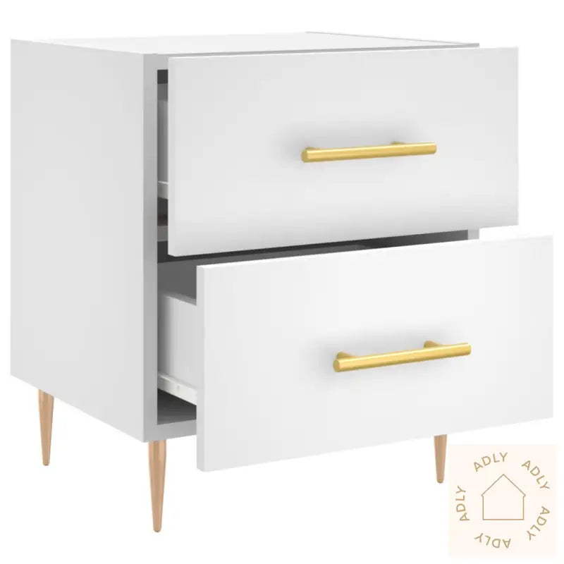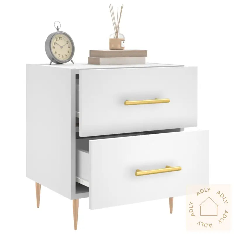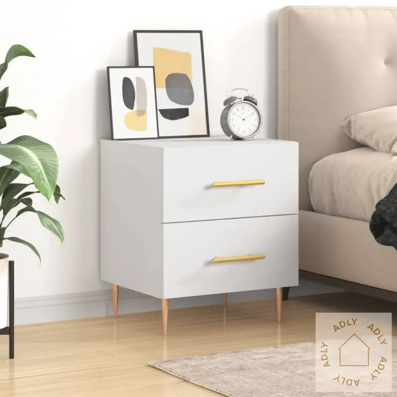 Slitesterkt materiale: Det konstruerte treverket har en elegant og glatt overflate. Materialet er kjent for sin styrke, stabilitet og motstand mot fuktighet – perfekt for møbler som brukes daglig hjemme. Dette gir deg et nattbord som både ser bra ut og varer lenge.Romslig oppbevaring: Nattbordet har praktiske skuffer med god plass til bøker, multimediautstyr og andre nødvendigheter, slik at du enkelt kan holde nattbordet ryddig og alt du trenger innen rekkevidde.Utstillingsmuligheter: Du kan bruke toppflaten til å vise frem bilder, personlige dekorasjoner eller blomster, noe som gir hjemmet ditt et personlig preg og ekstra stil. Slik blir det enkelt å friske opp soverommet på en smart måte.Metallføtter: De solide metallføttene gir nattbordet et moderne uttrykk og kombinerer elegant design med høy stabilitet. Dette gjør at møbelet står stødig og tar seg flott ut sammen med andre møbler til hjemmet ditt.Farge: hvitMaterialer: konstruert tre, jernMål: 40 x 35 x 47,5 cm (B x D x H)Montering kreves: ja