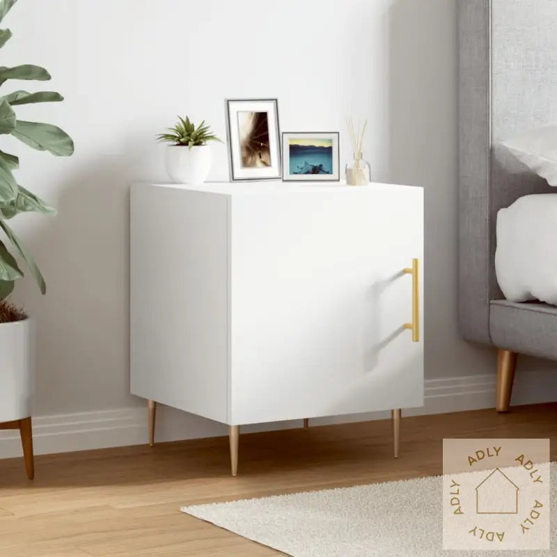 Slitesterkt materiale: Det konstruerte treverket i nattbordet har en flott, glatt overflate som også er robust og motstandsdyktig mot fuktighet. Dette gir deg et nattbord som holder seg pent og stødig over tid, selv ved daglig bruk.Romslig lagringsplass: Nattbordet har et generøst rom som sørger for romslig lagringsplass til bøker, multimediautstyr, ladere og alle småtingene du vil ha lett tilgjengelig – det hjelper deg å holde nattesaker organiserte og soverommet ryddig.Visningsfunksjon: Toppen fungerer perfekt til å vise frem favorittbildene dine, grønne planter, dekor eller blomster som frisker opp rommet og gir en personlig touch.Metallføtter: De stilige metallføttene gir nattbordet et moderne preg og sørger for god stabilitet uansett gulvtype, noe som gjør det til en pålitelig del av din møbelsamling.Praktisk dør: Døren lar deg enkelt holde nødvendigheter som lesebriller eller elektronikk fri for støv og ute av syne – perfekt for den som liker et minimalistisk preg.Dette praktiske nattbordet er et smart valg for deg som ønsker romslig lagringsplass og moderne design i ett. Det passer både sammen med andre møbler til hjemmet eller som en kontrast til klassiske innredninger.