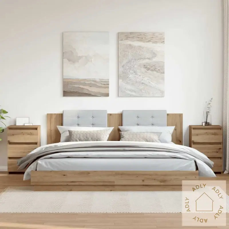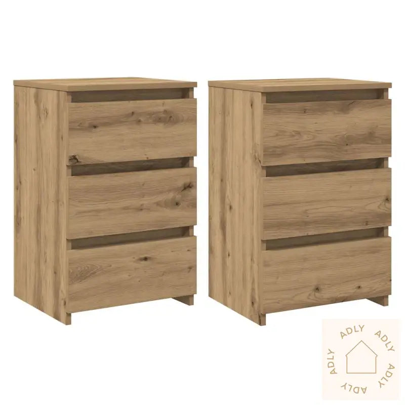 Stabilt og slitesterkt materiale: De er laget av konstruert tre, et robust og pålitelig materiale som har en jevn overflate og tåler både fuktighet, vridning og sprekker. Dette gjør det til et smart valg for hverdagsbruk.Rikelig med lagringsplass: Du får god oppbevaringsplass til magasiner, bøker, briller og annet nødvendig ved sengen. Det holder tingene dine pent organisert og lett tilgjengelig – akkurat der du trenger dem når natten faller på.Solid topp: Overflaten på nattbordet er romslig og solid, perfekt for favorittbordlampen din, vekkerklokke, bilderammer, små grønne planter eller pynt, i tillegg til annet nødvendig utstyr du gjerne har nært sengen.Allsidig bruk: Disse nattbordene med artisan eik-finish lar seg enkelt kombinere med annen innredning og kan brukes flere steder enn bare på soverommet. Bruk dem som sidebord i stua, i gangen eller andre rom der du trenger ekstra oppbevaringsplass til, for eksempel, bøker eller dekor.Lett å vedlikeholde: Den glatte overflaten gjør det superenkelt å holde nattbordene rene. En fuktig klut er alt som trengs, så sparer du tid på vedlikehold.Advarsel: