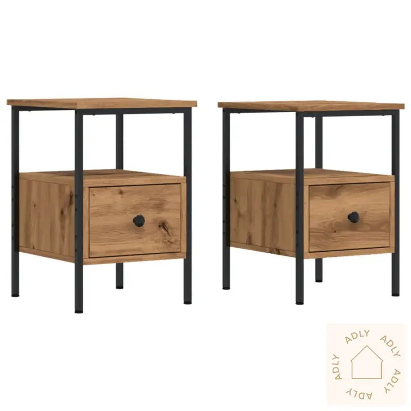 Slitesterkt materiale: Nattbordene er laget av konstruert tre av høy kvalitet, som gir en jevn overflate og sikrer god styrke, stabilitet og motstand mot fukt. Dette gjør dem ekstra solide, slik at du kan ha glede av møblene i mange år.Stabil ramme: De robuste jernrammene gir ekstra holdbarhet og sørger for at nattbordene står stødig – perfekt når du har behov for trygge og pålitelige møbler til hjemmet.Rikelig med lagringsplass: Du får god plass til alt du vil ha nær hånden – enten det er bøker, ladere eller andre ting du bruker daglig. Med smarte oppbevaringsmuligheter er det enkelt å holde ting ryddig og lett tilgjengelig.Visningsfunksjon: Topplaten på nattbordet gir deg muligheten til å vise frem dekorative elementer, som favorittbilder, grønne planter eller blomster. Slik kan du enkelt gjøre rommet mer personlig og levende.Justerbare føtter: Med fire justerbare føtter utstyrt med plastputer, kan du alltid få nattbordet til å stå stabilt, selv på ujevne gulv. Dette gir ekstra sikkerhet og holder møbelet godt balansert – særlig praktisk hvis du har harde gulv eller gamle tregulv.Advarsel: