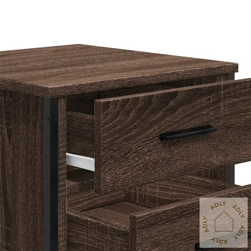 Holdbart materiale: Nattbordet er laget av konstruert treverk av førsteklasses kvalitet, kjent for sin glatte overflate, styrke og imponerende stabilitet. Materialet er også motstandsdyktig mot fuktighet, og sørger for at bordet holder seg pent over tid – et smart valg når du vil investere i solide møbler til hjemmet.Rikelig med oppbevaringsplass: De to romslige skuffene hjelper deg å holde orden på magasiner, bøker, fjernkontroller eller andre småting – perfekte løsninger for å skape et ryddig og innbydende soverom. Alt du trenger, er enkelt innen rekkevidde for en mer komfortabel hverdag.Solid topp: Den robuste overflaten gir deg muligheten til å vise frem dekorative favoritter, som familieportretter i fotorammer, grønne potteplanter eller personlige pynteting som gir rommet mer personlighet.Metallben: De solide metallbena gir nattbordet et moderne preg og bidrar samtidig til ekstra stabilitet. Denne kombinasjonen av brun eik og metall passer perfekt sammen med andre bokhyller og stående hyller i tilsvarende stil, og gir en helhetlig følelse i hjemmet.Farge: brun eikMaterialer: konstruert tre, metallMål: 40 x 41 x 40 cm (L x B x H)Montering kreves: ja