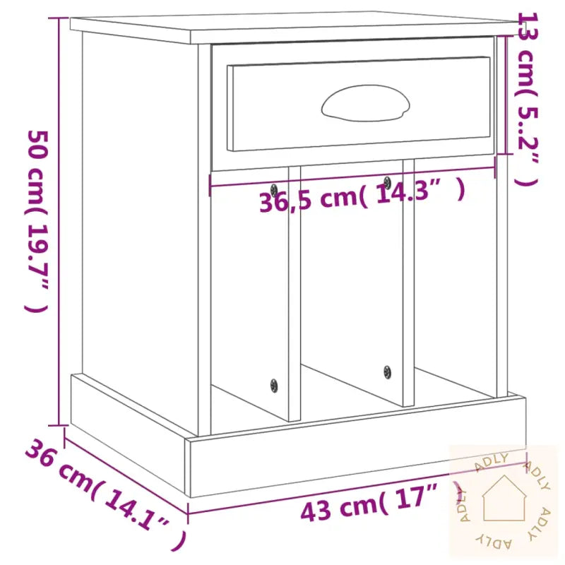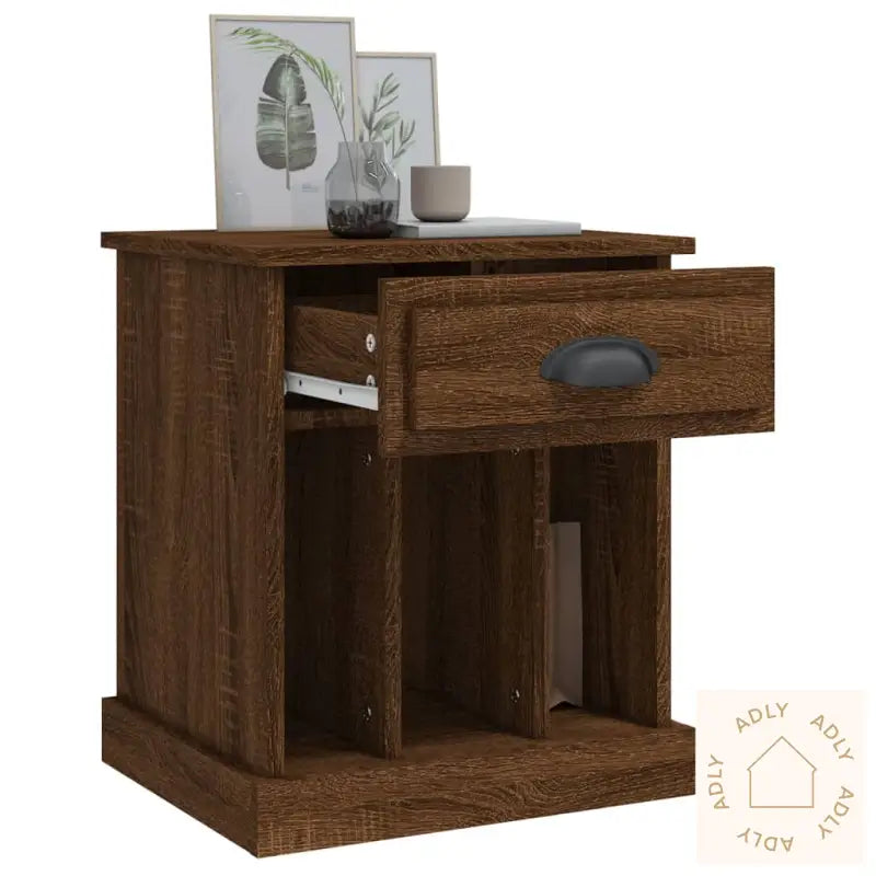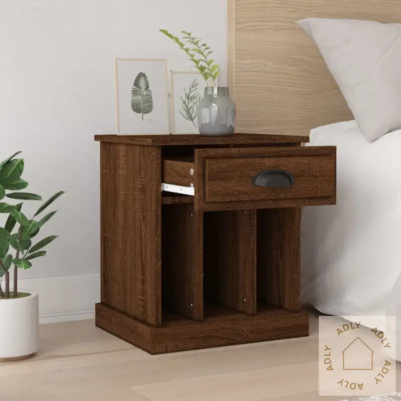 Slitesterkt materiale: Nattbordene er laget av konstruert tre av høy kvalitet, kjent for sin glatte overflate og solide holdbarhet. Dette materialet styrker møbelets stabilitet, og er også motstandsdyktig mot fuktighet – perfekt for hverdagsbruk i hjemmet.God lagringsplass: Med én skuff og tre rom får du rikelig plass til å organisere bøker, elektronikk eller andre småting du vil ha lett tilgjengelig. Her kan du enkelt holde orden på alt fra lesebriller til ladere.Stabil og solid bordplate: Den robuste toppen fungerer ideelt til dekor – sett frem potteplanter, bilder eller favorittbøkene dine, og skap et personlig preg.For å gjøre monteringen enkel og grei følger det med en brukervennlig manual i pakken.