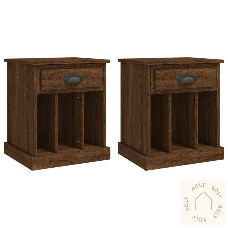 Disse nattbordene har et stilrent og tidløst design som enkelt passer inn med ulike typer møbler til hjemmet. De gir soverommet ditt en moderne touch og et praktisk løft, samtidig som den lune brun eik-fargen gir varme og karakter til interiøret.