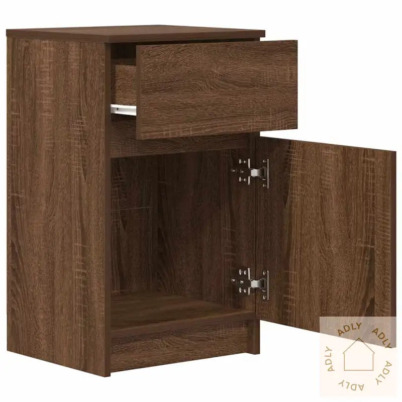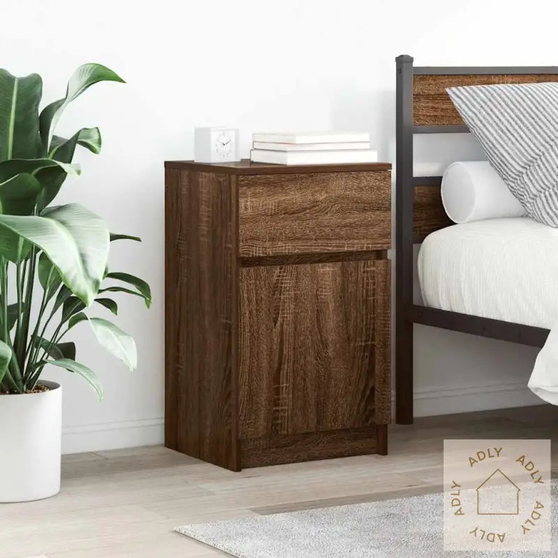 Introduser et snev av sjarm til innredningen med dette stilige nattbordet i brun eik – perfekt som en del av dine møbler til hjemmet!