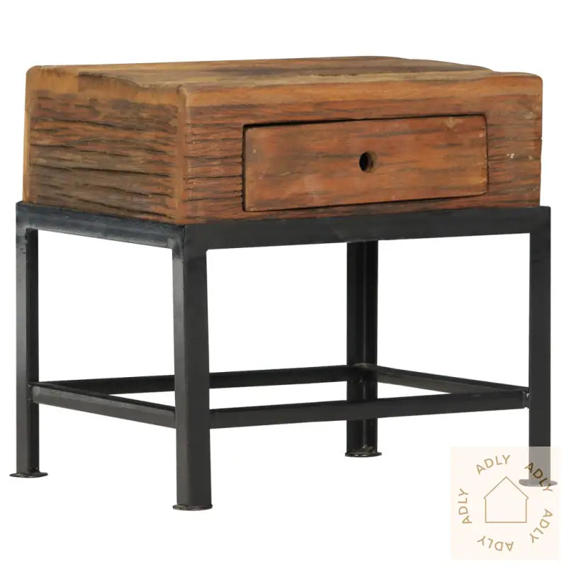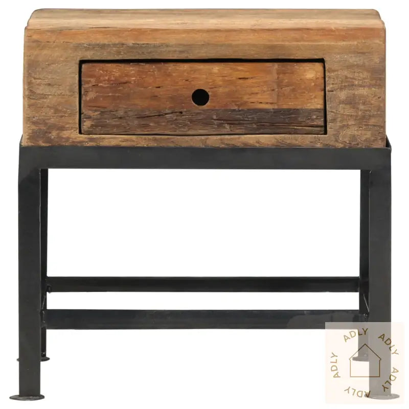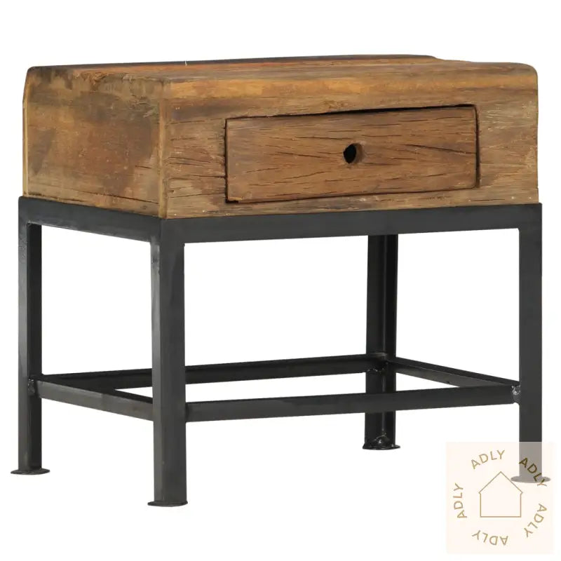 Farger: naturell og svartMaterialer: gjenvunnet heltre, pulverlakkert stålMål: 40 x 35 x 40 cm (L x B x H)Med en skuffPolert, malt og lakkertMontering kreves: ja