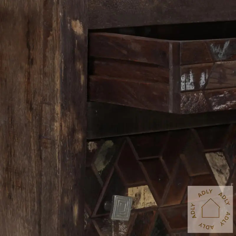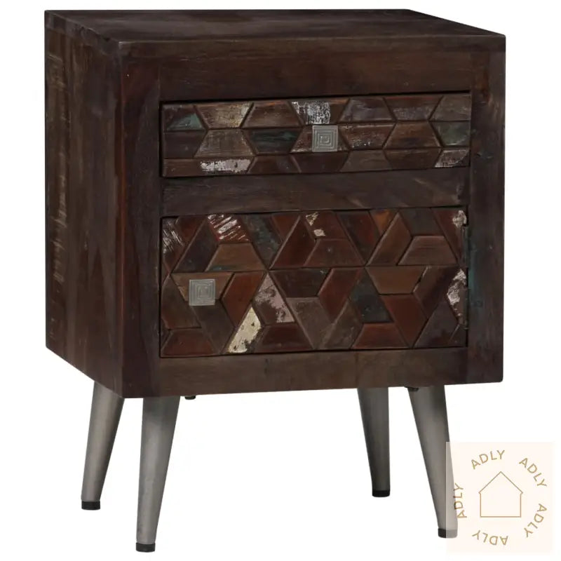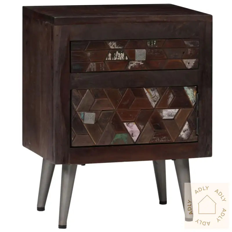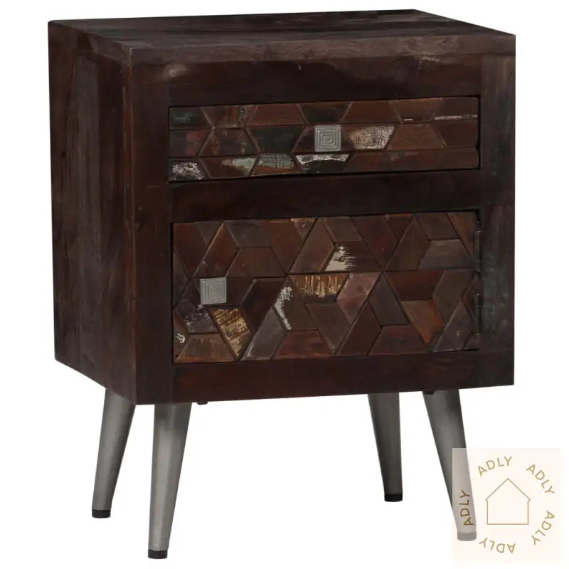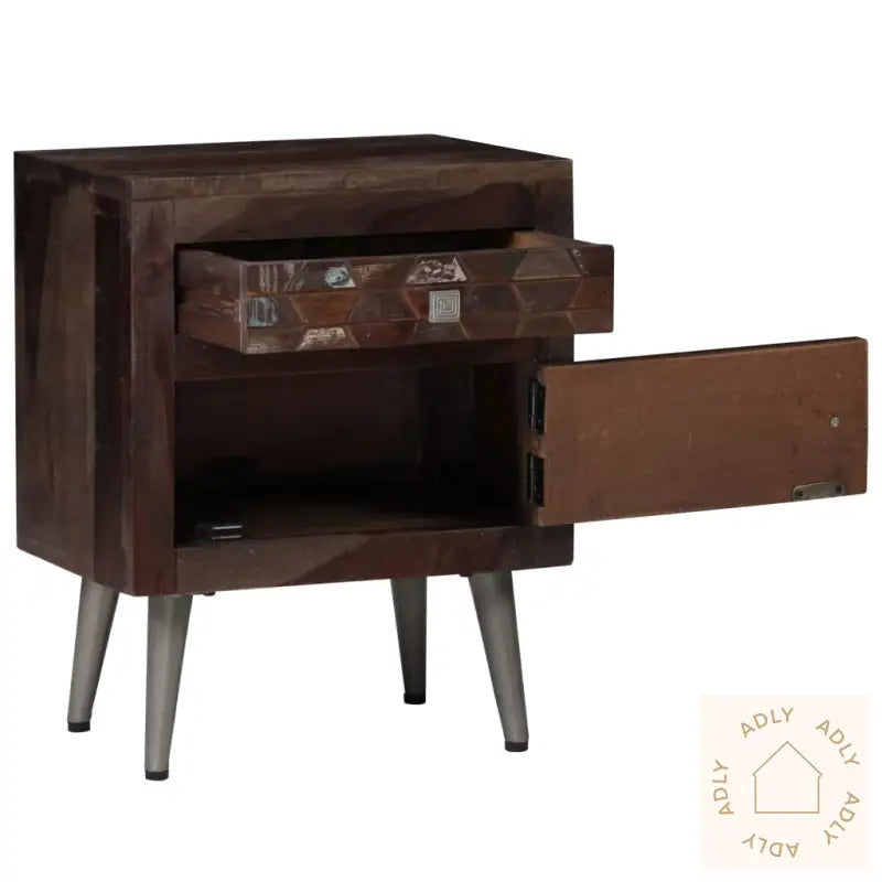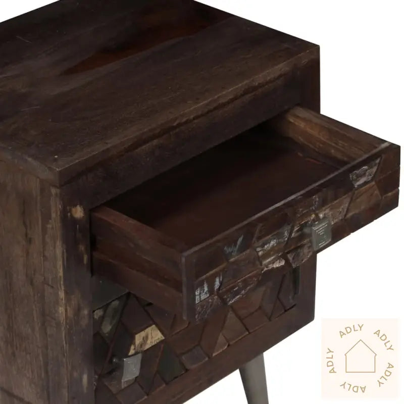 Dette nattbordet i gjenvunnet heltre gir et både dekorativt og praktisk løft til hjemmet. I tillegg til å fungere perfekt som nattbord, passer det også godt som sideskap, plantebord eller til og med som telefonbord – alt etter hva du trenger i boligen.