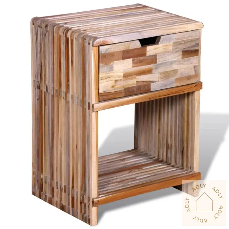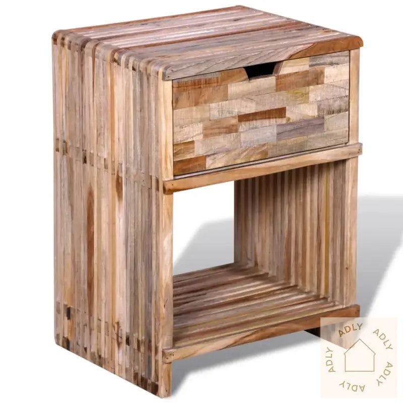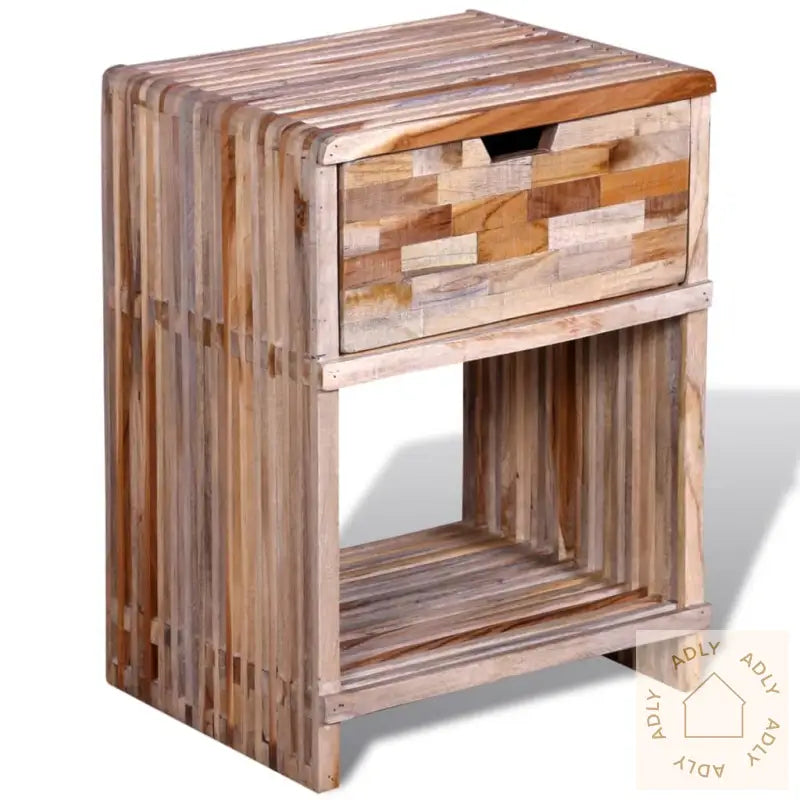 Nattbordet er håndlaget av gjenvunnet teak, så hvert eneste stykke er helt unikt, med forskjeller i både farge og finish. Gjenvunnet teak gir et robust, stabilt og slitesterkt møbel som også har en naturlig, tidløs skjønnhet. Den delvis håndlagde produksjonen fremhever den klassiske sjarmen og gir nattbordet masse karakter. Kvaliteten ivaretas nøye i alle ledd av prosessen – fra valg av materialer til rekombinering, polering og maling, noe som gir deg et ekte kvalitetsprodukt laget for å vare.