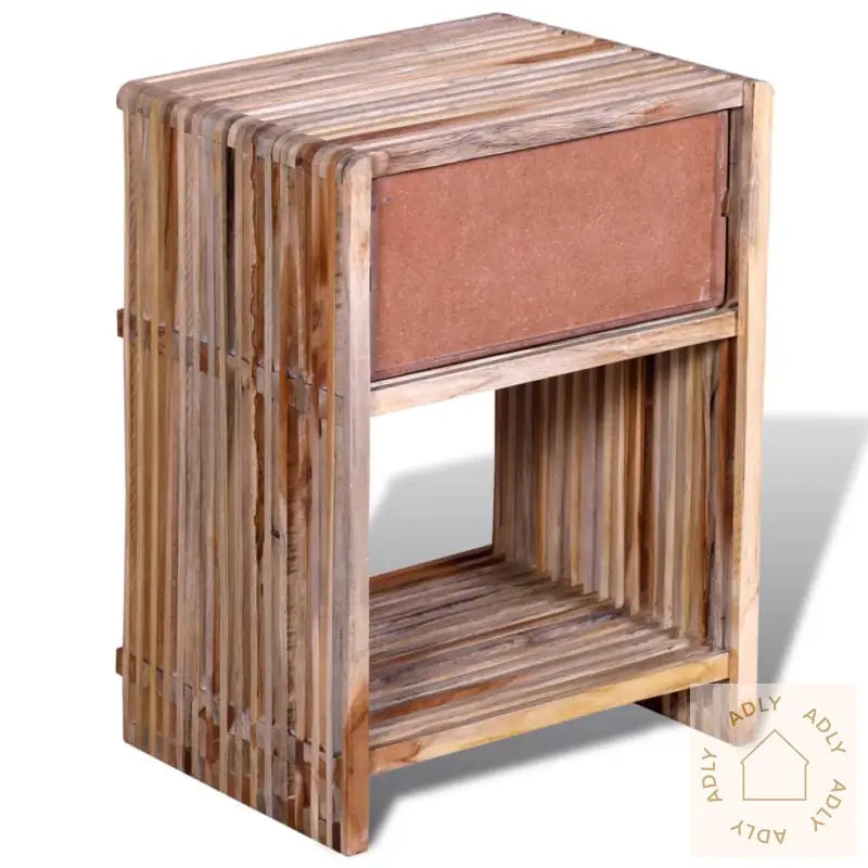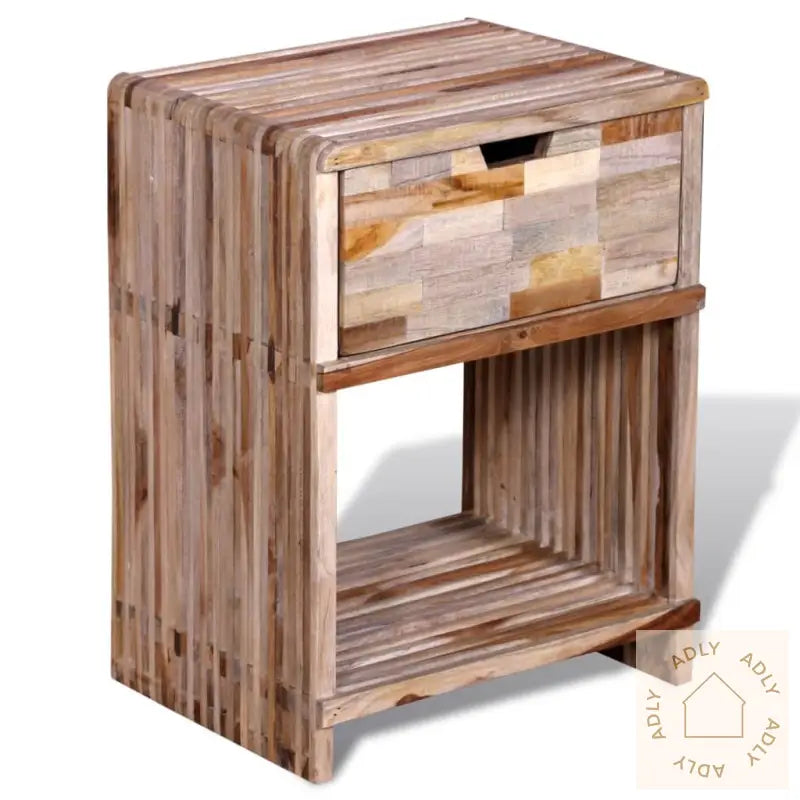 Viktig å merke seg: Fargene varierer fordi møbelet er laget av ekte gjenvunnet teak, noe som gjør hvert nattbord eksklusivt og personlig. Utvalget sendes tilfeldig, så du får alltid et virkelig originalt produkt.