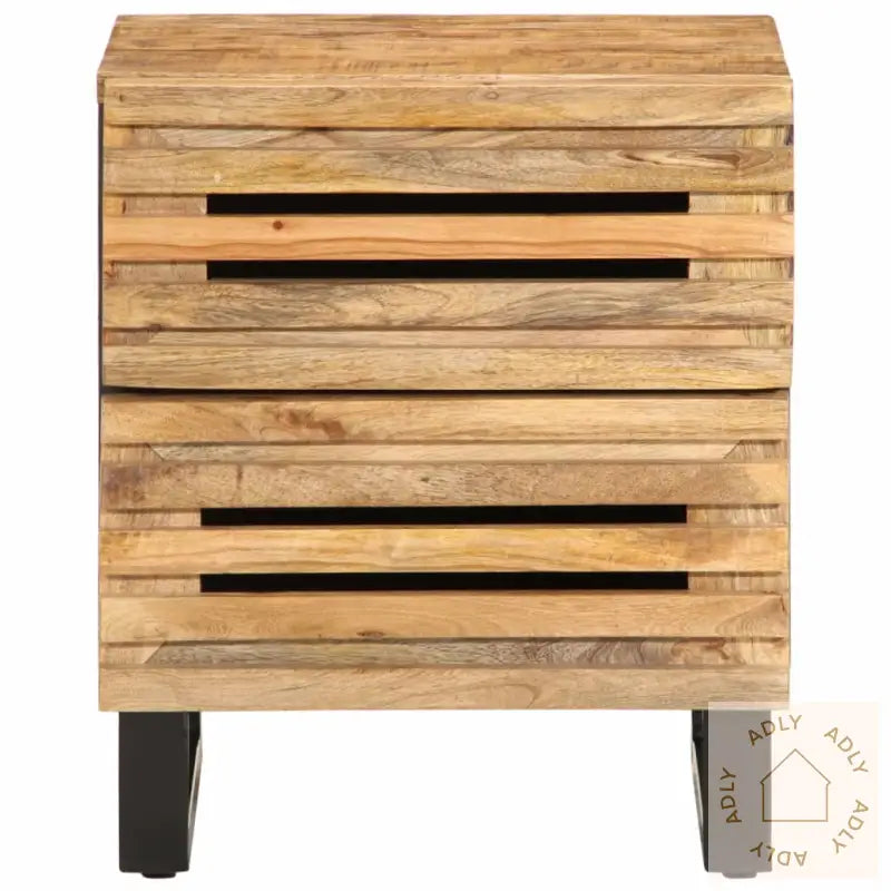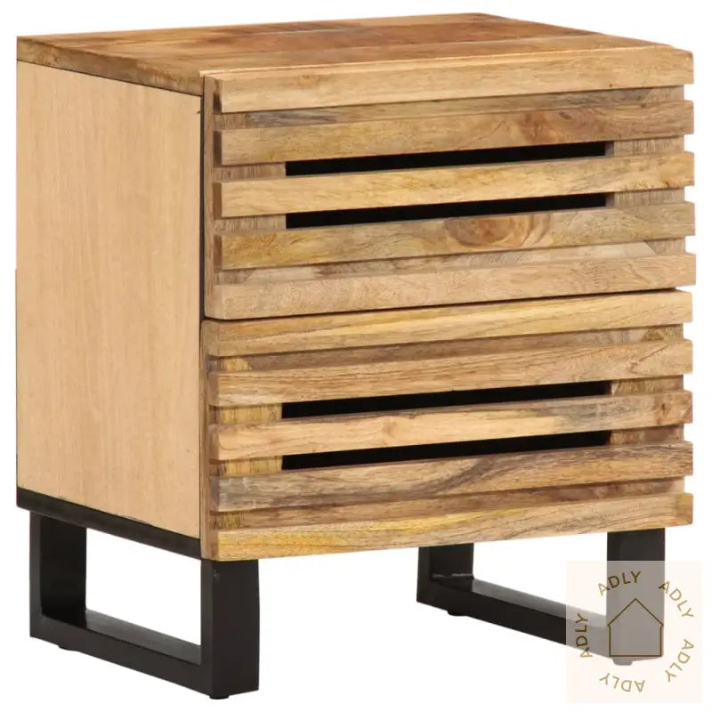 Heltre mango: Nattbordet er produsert i grovt heltre mangotre, som ikke bare er kjent for sin styrke og holdbarhet, men også for de karakteristiske og flotte trekornene. Hvert nattbord får dermed sitt eget unike utseende og særpreg, slik at møbelet blir helt spesielt.Rikelig med oppbevaringsplass: De to romslige skuffene gjør det enkelt å holde orden på alt fra bøker og magasiner til småleker og personlige saker. Du får god plass til både å vise frem pynt og gjemme unna ting du ikke vil ha liggende fremme, noe som gir et ryddig inntrykk i rommet ditt.Stabile og holdbare ben: Solide ben i stål sørger for at møbelet står stødig, også på ujevne gulv. Dette gir ekstra trygghet og stabilitet i hverdagen, samtidig som det industrielle preget forsterkes.Godt å vite: