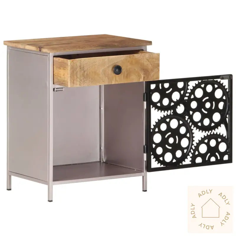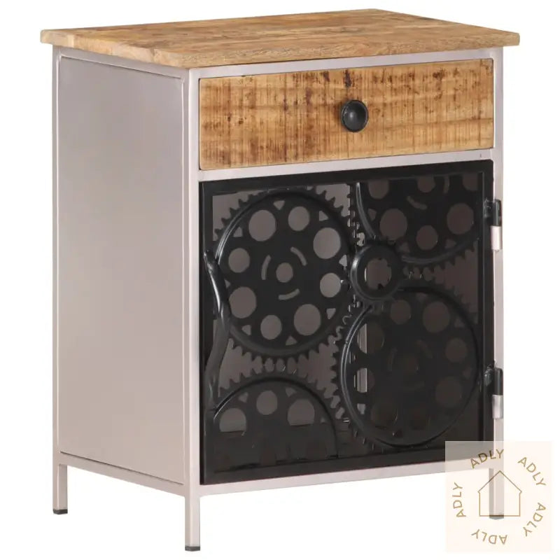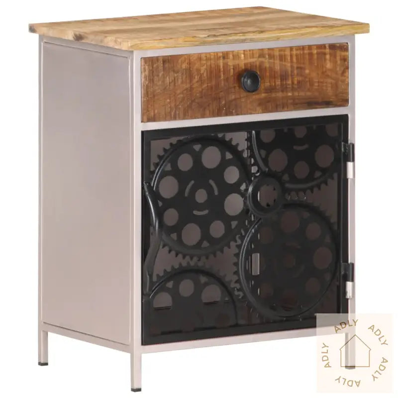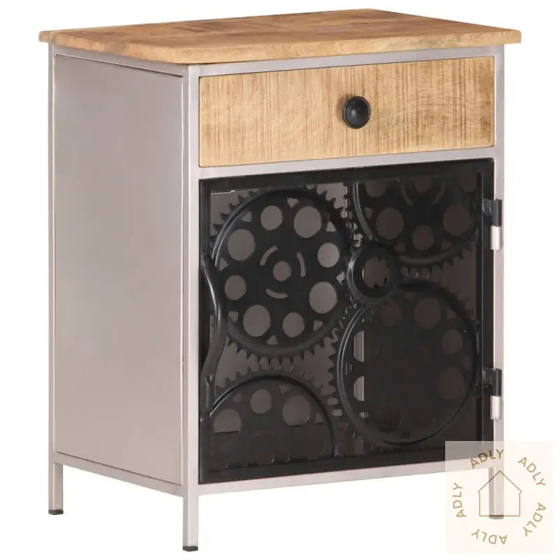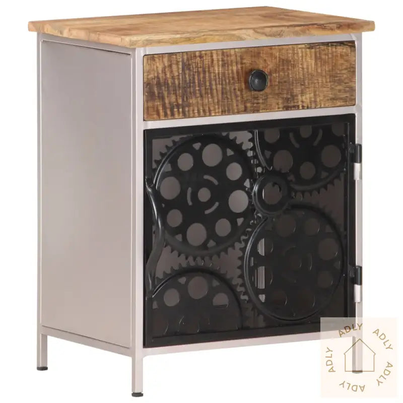 For deg som liker å holde det organisert, har nattbordet både en skuff og en dør. Det gir deg god plass til å lagre bøker, briller eller andre ting du vil ha lett tilgjengelig. Døren er dekorert med ekte sykkelkjedehjul, noe som gir et stilig og originalt preg på møbelet.