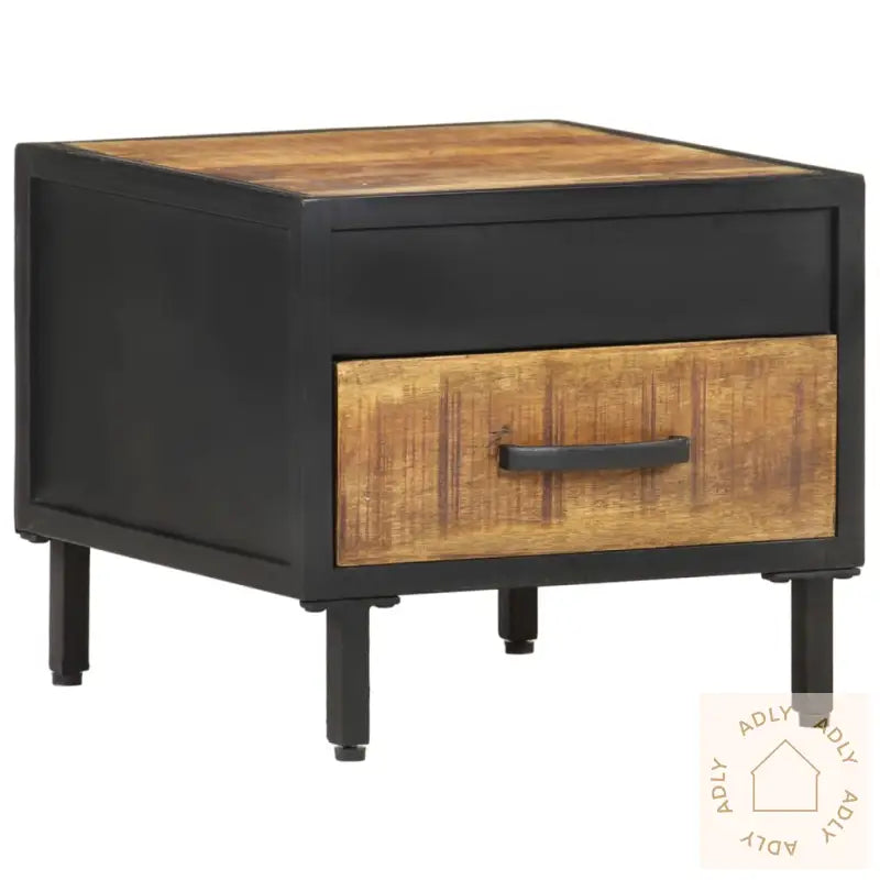 De pulverlakkerte stålbena gir både stabilitet og ekstra styrke, samtidig som de tilfører en moderne, industriell touch som passer perfekt sammen med det naturlige mangotreet. I den praktiske skuffen har du lett tilgjengelig oppbevaringsplass til småting som bøker, briller, ladere eller andre nødvendigheter, så rommet ser ryddig ut.
