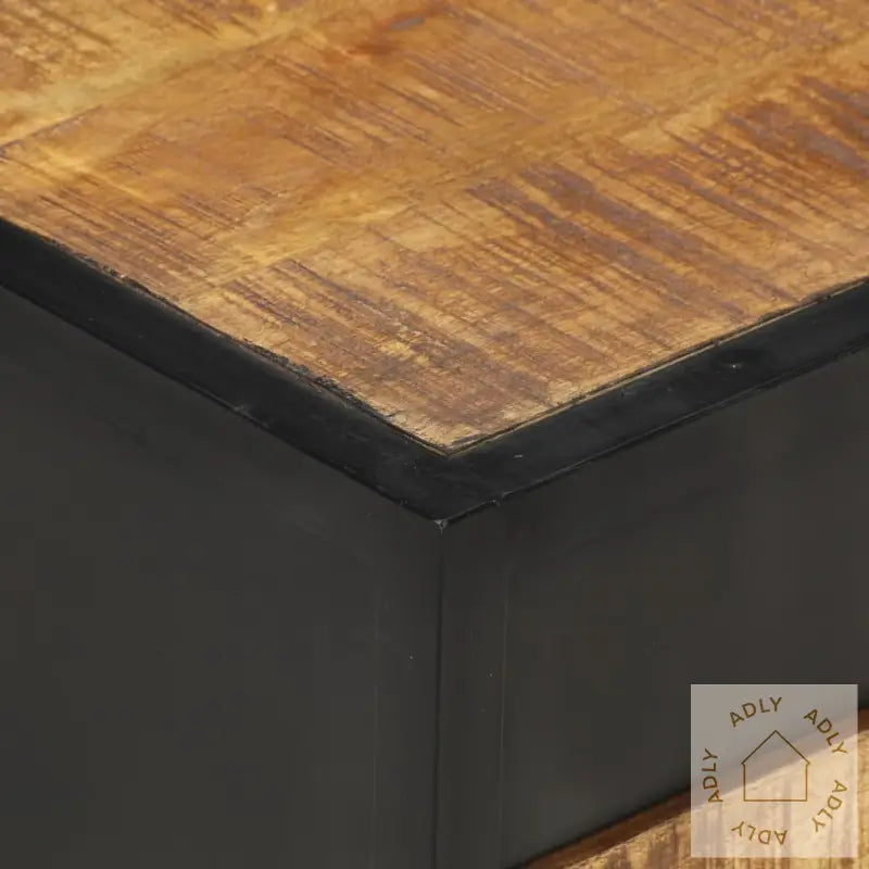Materialer: grovt mangotre, pulverlakkert stålMål: 40 x 40 x 35 cm (L x B x H)Har industriell stilMontering kreves: ja