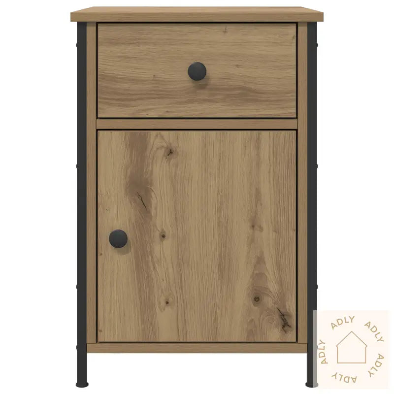 Nattbordet er laget av solid eik kombinert med konstruert tre, noe som gir et robust og slitesterkt møbel. Den kompakte størrelsen gjør det ideelt til mindre soverom, samtidig som det tilbyr god plass til bøker, lamper eller andre nødvendigheter du vil ha lett tilgjengelig ved sengen. Den matte finishen gir en moderne touch, samtidig som den rike brunfargen gir varme til rommet. Døren gir deg mulighet til å skjule rot, mens designet sørger for at nattbordet alltid ser ryddig ut.